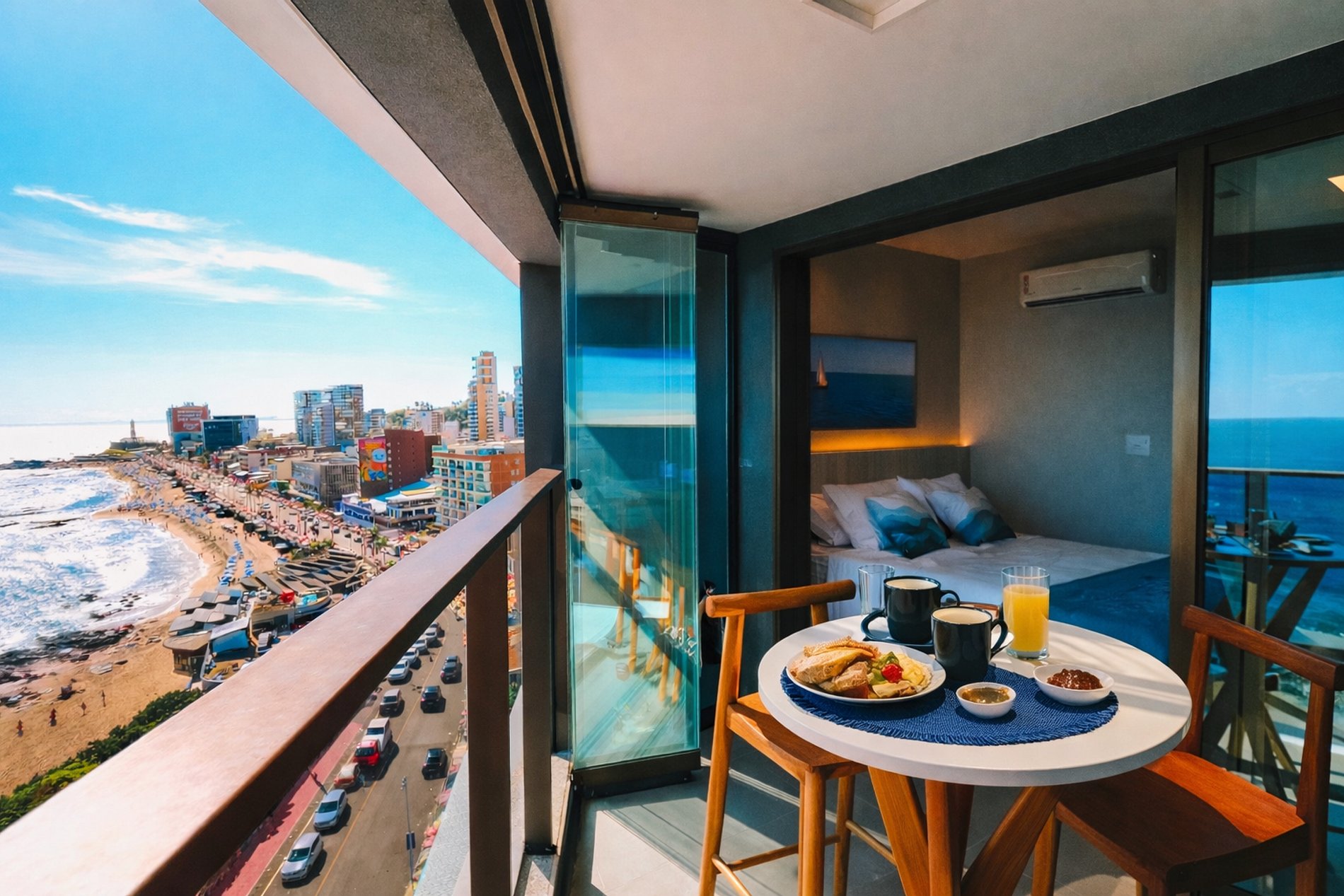 Located in front of Cristo da Barra and just a few steps from the two most beloved beaches in the city: Farol da Barra, an iconic tourist spot, and Porto da Barra Beach, known for its calm, crystal-clear waters — perfect for swimming, sports, and unforgettable sunsets. The area is safe, lively, and surrounded by restaurants, cafés, markets, and cultural attractions.