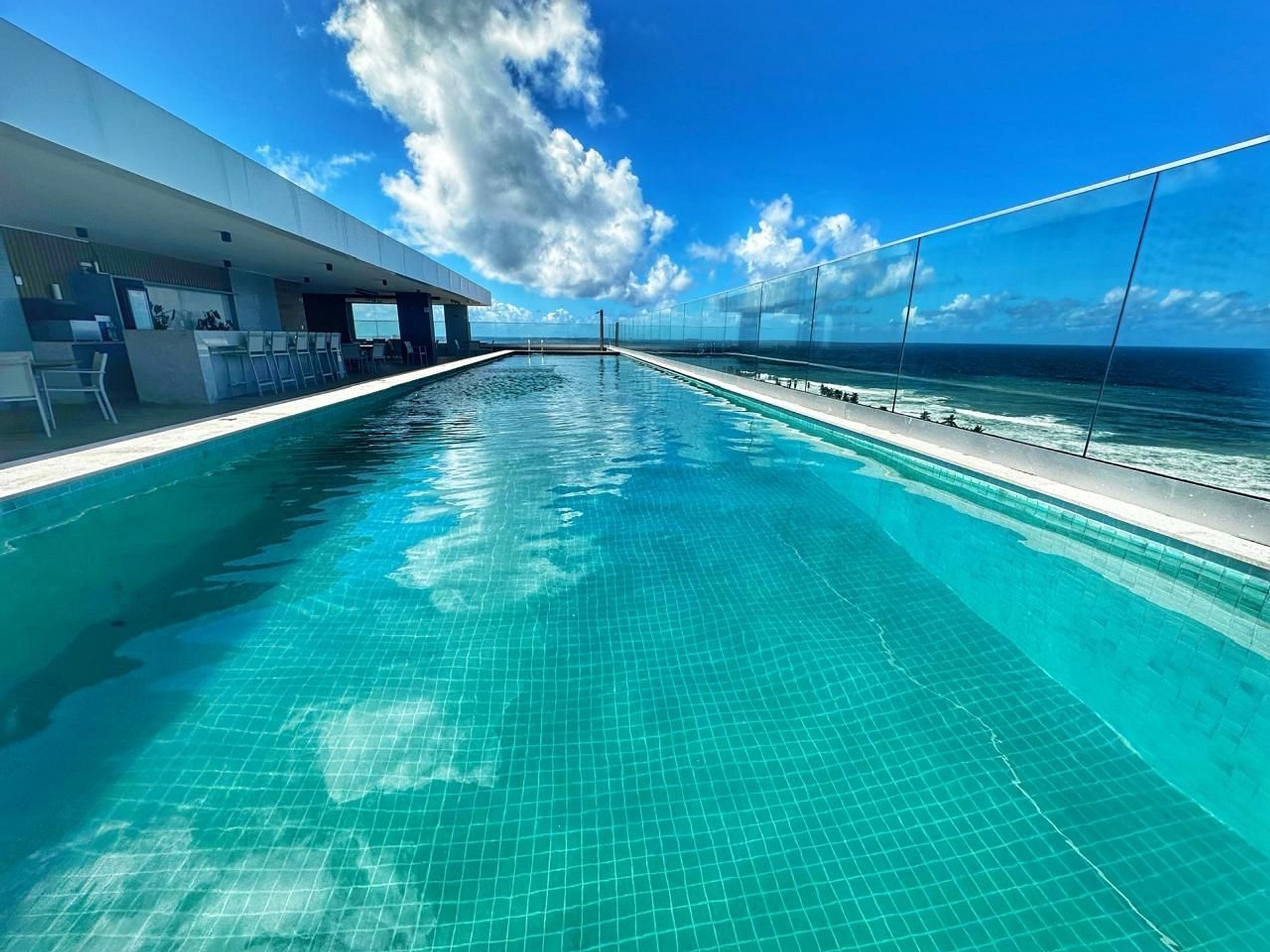 Os hóspedes podem usufruir da academia, piscina, brinquedoteca e coworking.