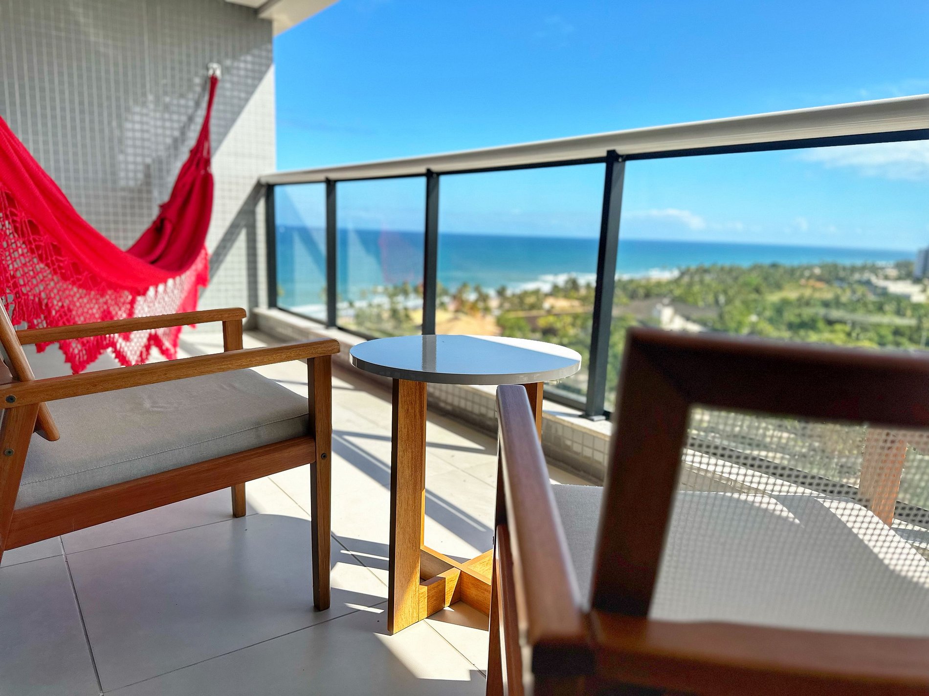 *Ampla varanda com rede de descanso e uma vista deslumbrante do mar ou pôr do sol de Salvador.