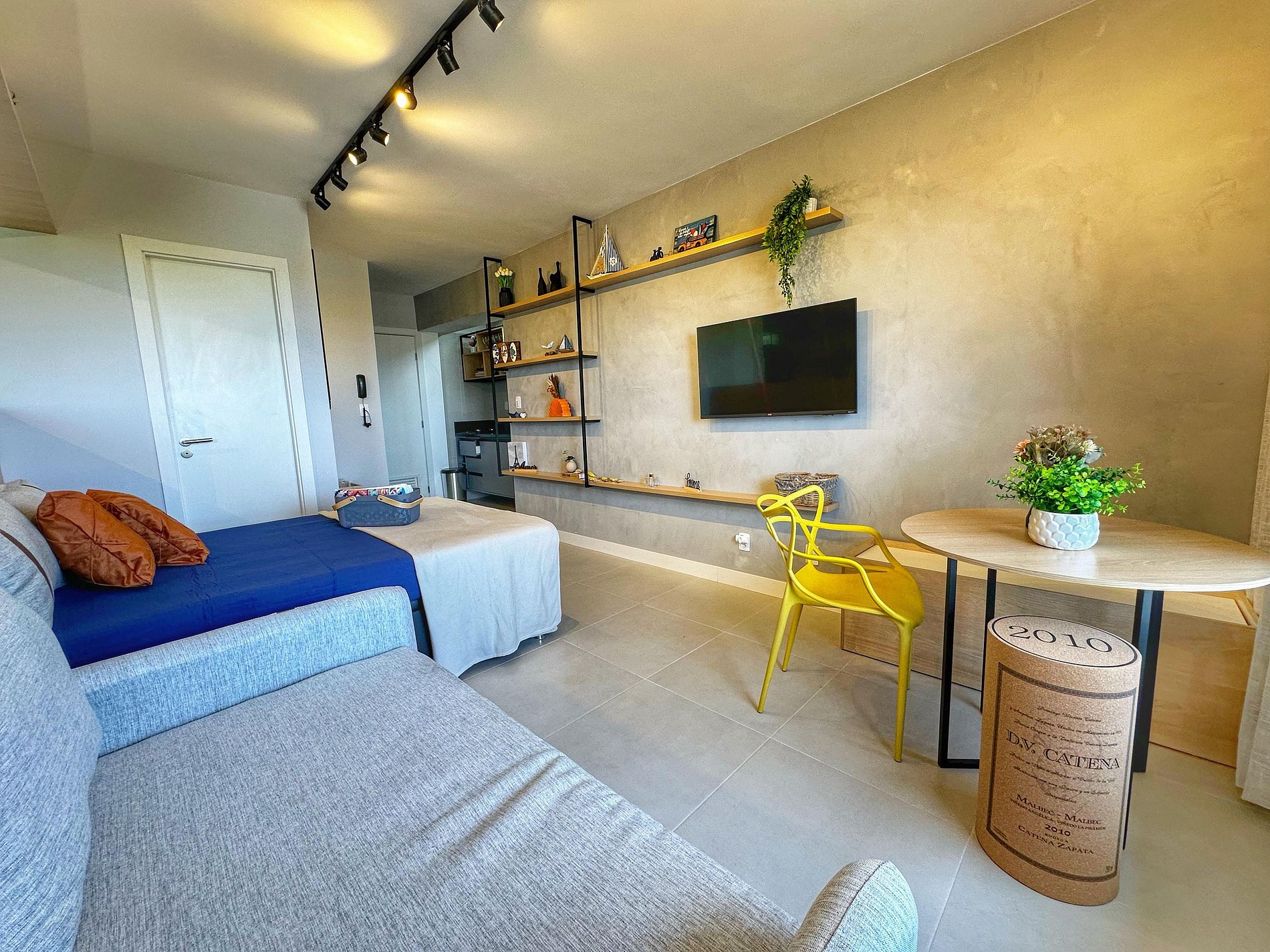 A sala e cozinha integradas, também climatizadas, possuem uma Tv smart, fogão, geladeira, microondas, utensílios de cozinha e uma pequena área de serviço. Cada detalhe aqui foi pensando para lhe dar o máximo de conforto.