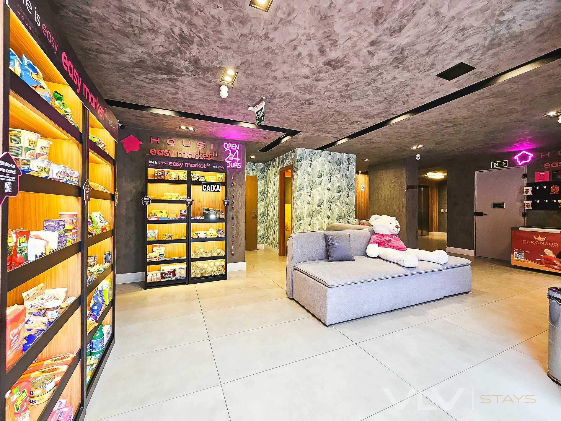Aqui você tem tudo que você precisa em uma viagem de lazer ou mesmo de trabalho. O prédio conta com mini mercado interno do tipo "grab and go" 24 horas, um super e charmoso coworking, um lounge incrível, academia, lavanderia, piscina no rooftop.