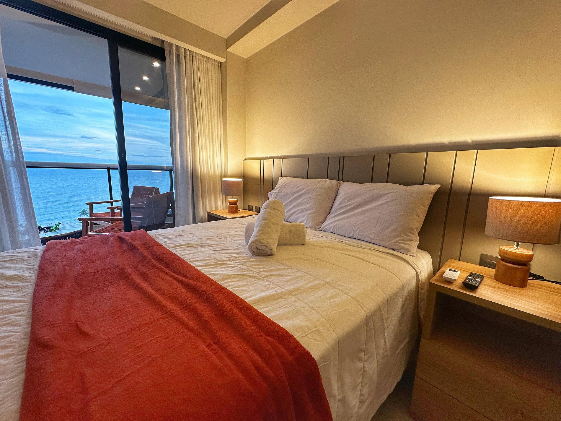 Você pode escolher entre relaxar na varanda com magnifica vista mar ou contemplar o pôr do sol na piscina ou caminhar poucos metros até a praia.