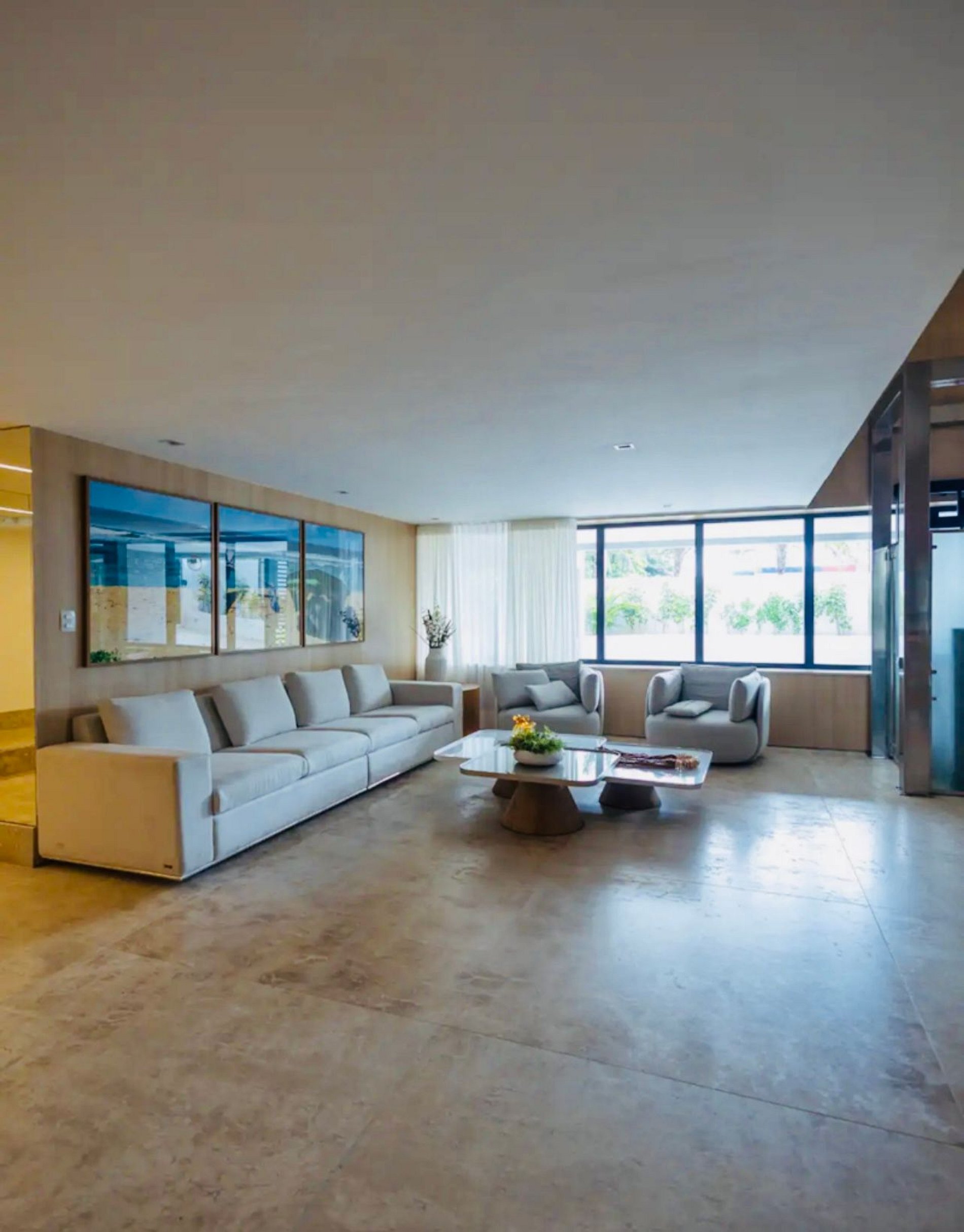 O apartamento conta com uma suíte, um quarto, banheiro, sala, cozinha, área de serviço e uma super sala com varanda integrada. Apto possui ar condicionado na sala e nos quartos. Conta com uma Tv smart na sala e nos dois quartos, cozinha com fogão de indução 4 bocas, forno, micro-ondas, filtro de água gelada, geladeira, cafeteira, liquidificador, ferro de passar, utensílios de cozinha e uma pequena área de serviço com tanque, varal de chão e aspirador de pó.