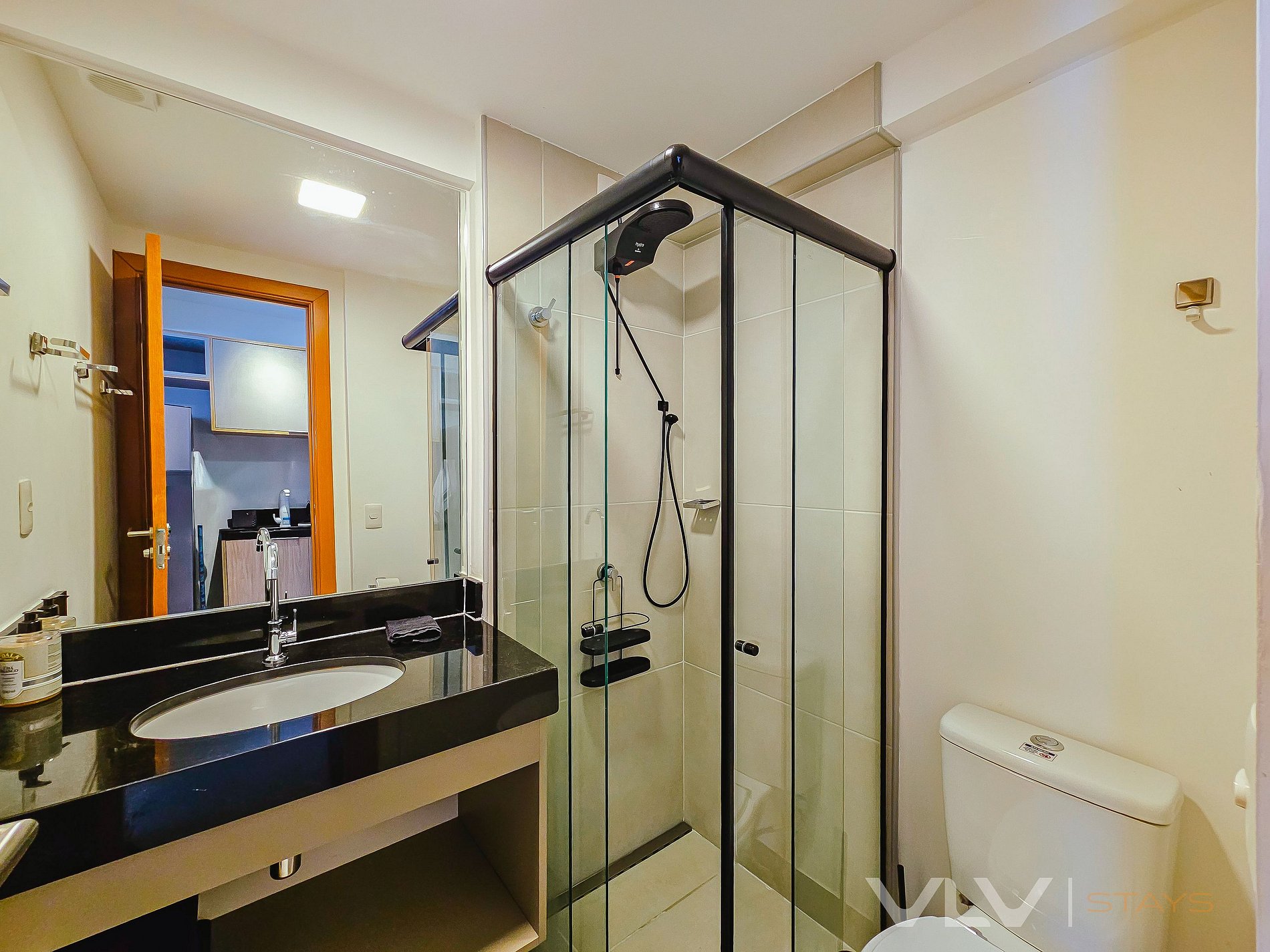 Aqui você tem tudo que você precisa em uma viagem de lazer ou mesmo de trabalho. O prédio conta com mini mercado interno do tipo "grab and go" 24 horas, um super e charmoso coworking, um lounge incrível, academia, lavanderia, piscina no rooftop.