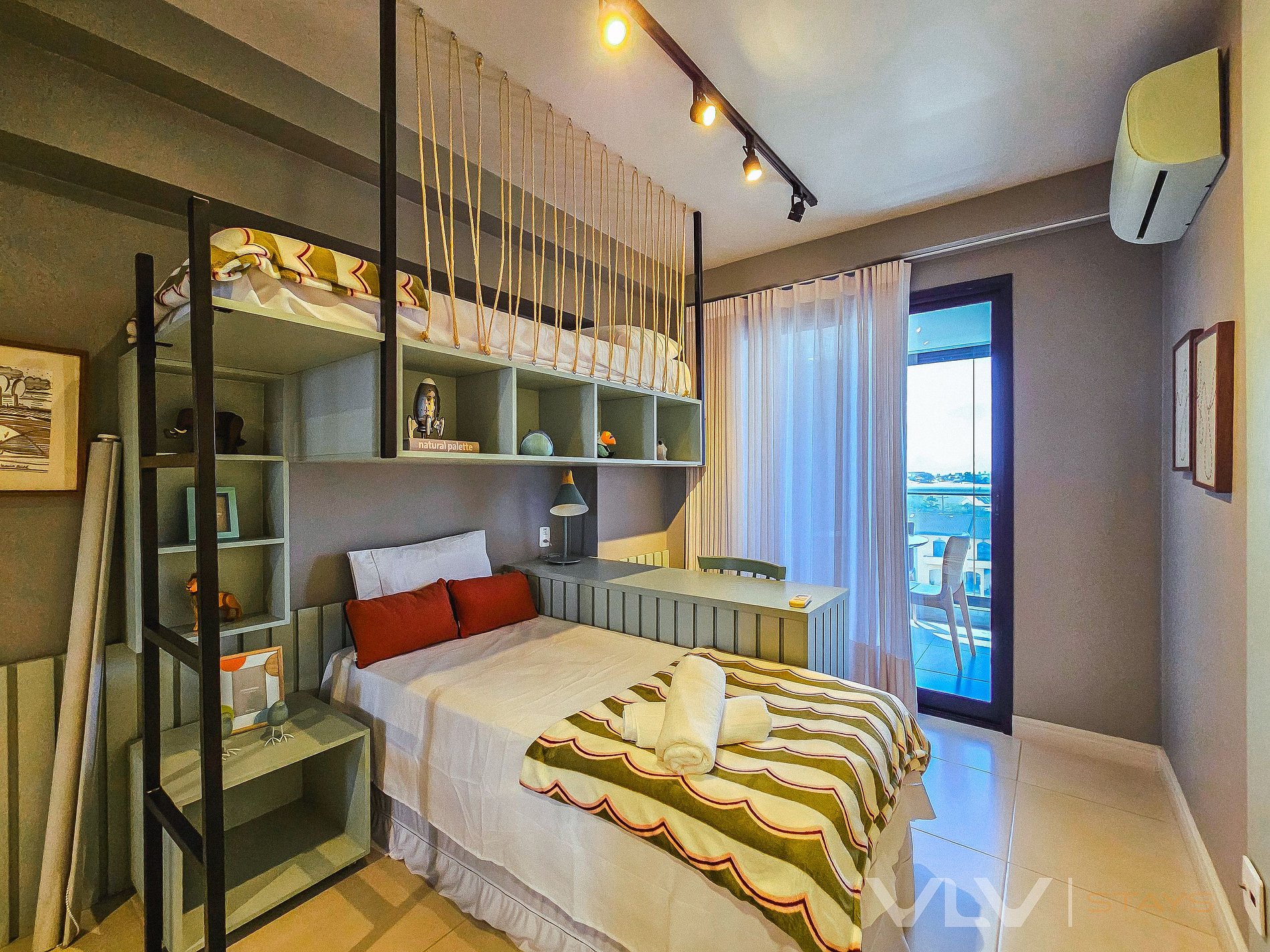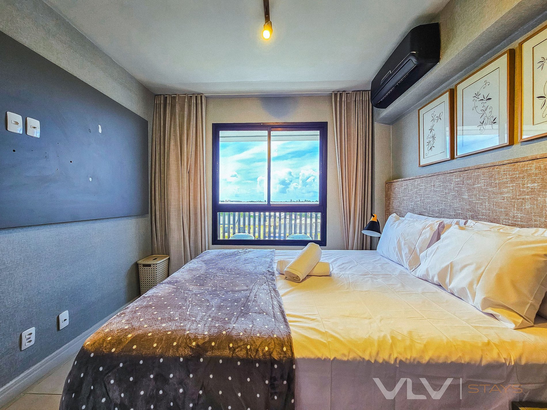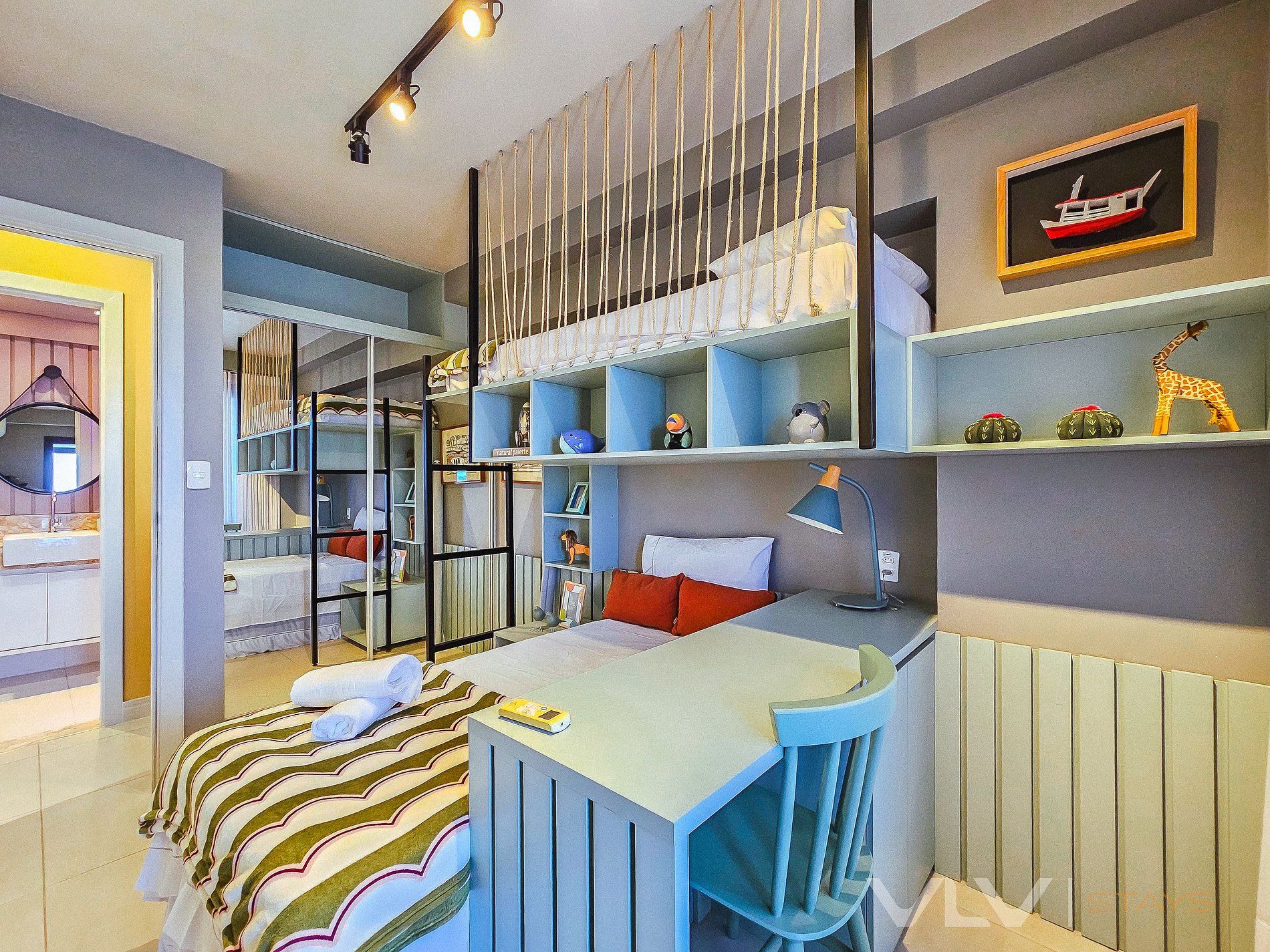 Stunning apartment, finely decorated and fully air-conditioned, with a giant BALCONY, OCEAN VIEW, 2 bedrooms (including one en-suite) with partial ocean view. Comfortably accommodates 4 guests (1 double bed + 1 bunk bed). Enjoy the building’s amenities, such as the incredible rooftop POOL WITH OCEAN VIEW, fully air-conditioned gym with spinning room, 2 coworking spaces, and a kids’ playroom. Let yourself be enchanted by the magic of Bahia and start creating unforgettable memories!