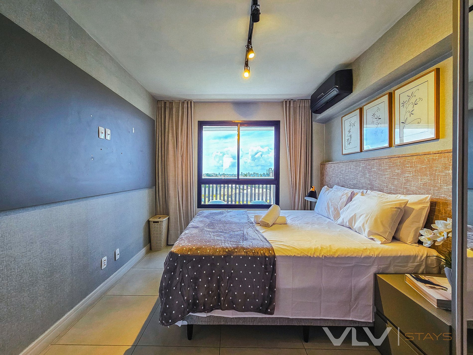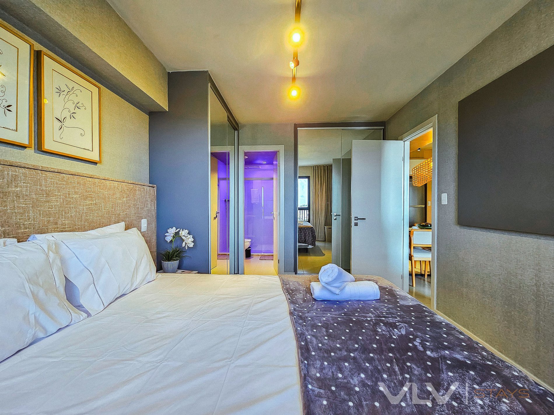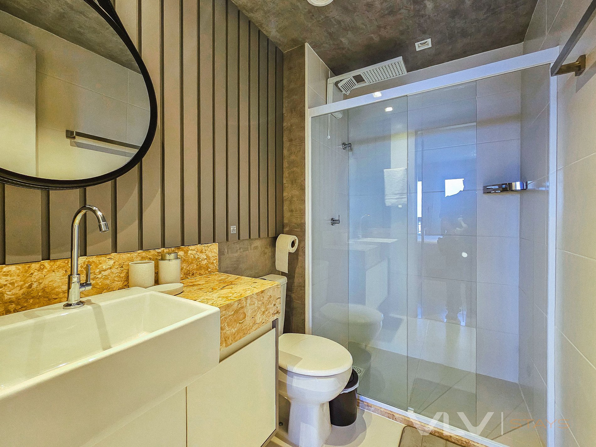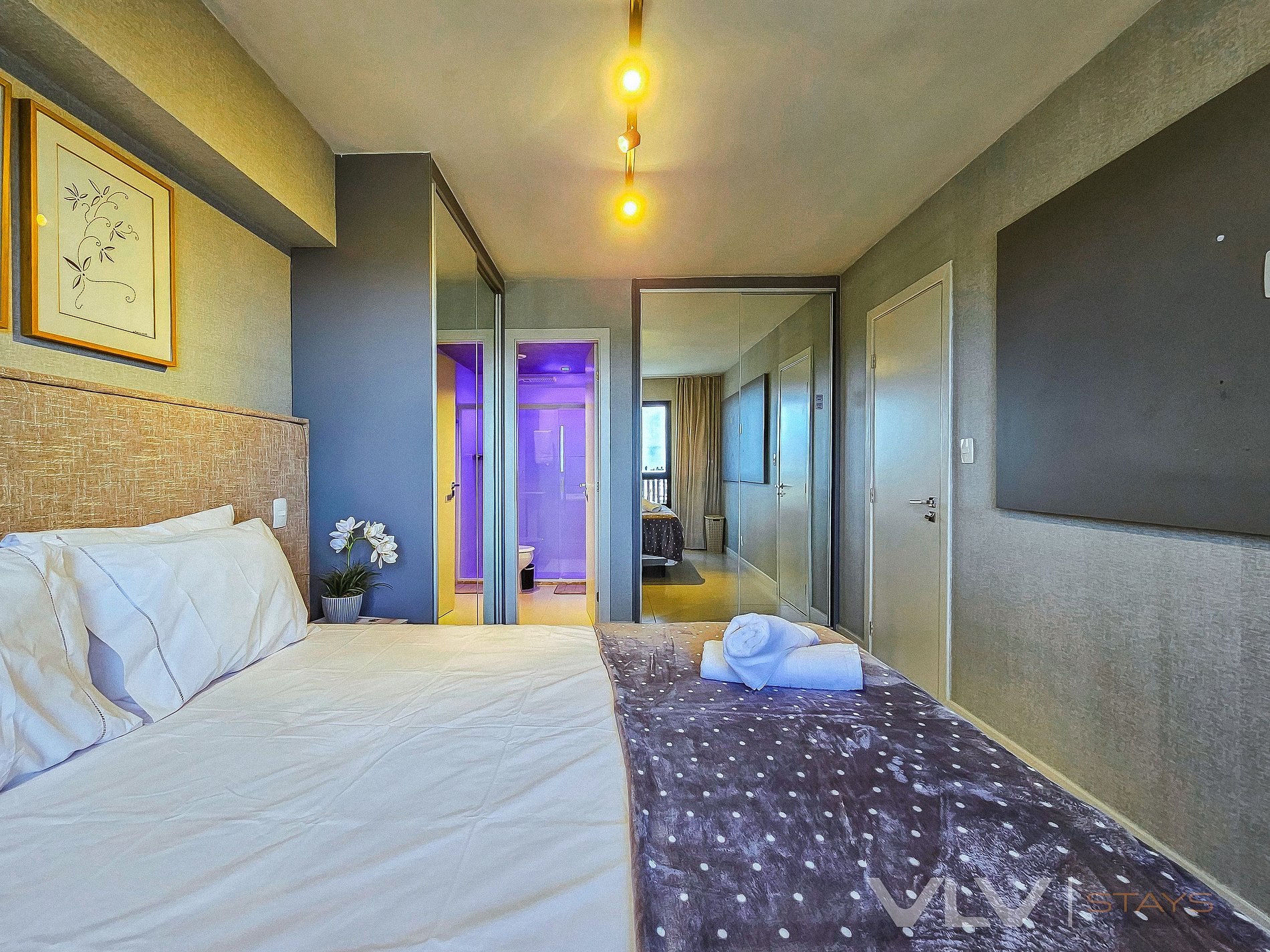 Stunning apartment, finely decorated and fully air-conditioned, with a giant BALCONY, OCEAN VIEW, 2 bedrooms (including one en-suite) with partial ocean view. Comfortably accommodates 4 guests (1 double bed + 1 bunk bed). Enjoy the building’s amenities, such as the incredible rooftop POOL WITH OCEAN VIEW, fully air-conditioned gym with spinning room, 2 coworking spaces, and a kids’ playroom. Let yourself be enchanted by the magic of Bahia and start creating unforgettable memories!