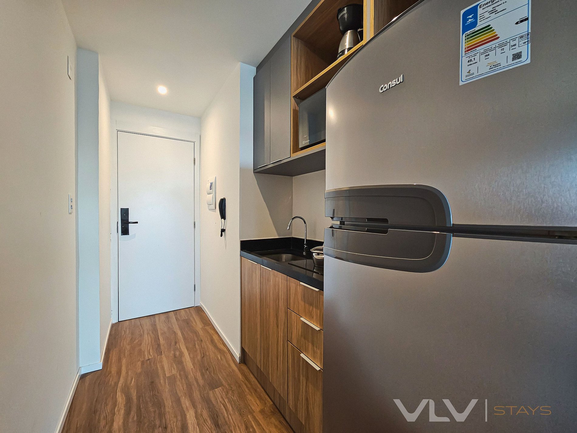 Enjoy a modern, cozy, and beautifully decorated studio located right in front of Armação Beach. The space features a double bed, a fully equipped kitchen, fast Wi-Fi, and everything you need to feel at home.