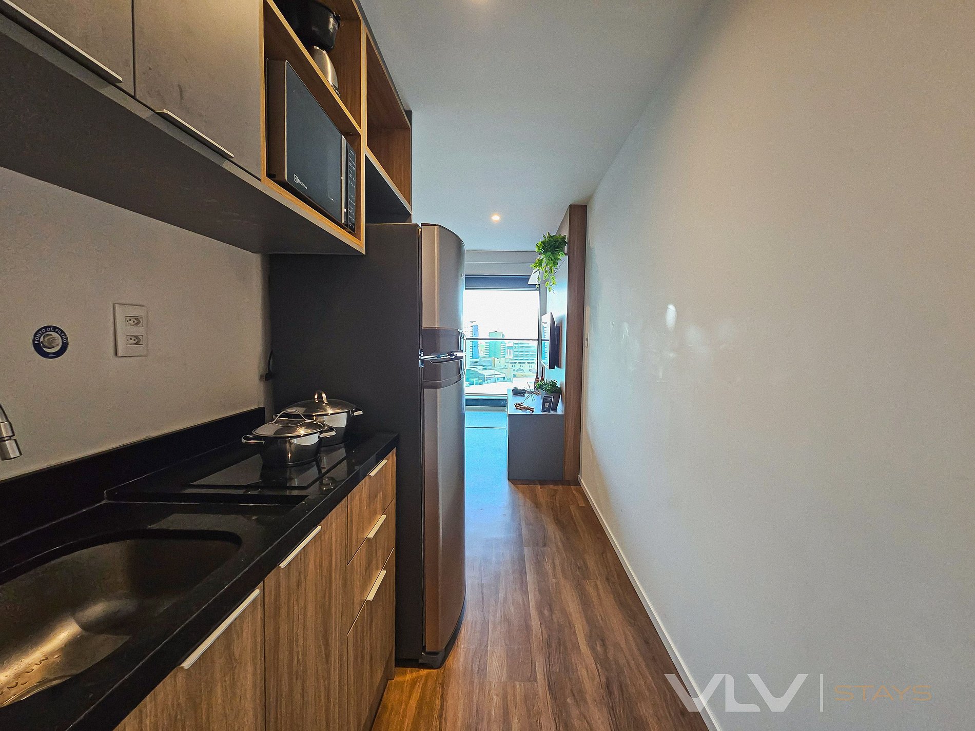 Enjoy a modern, cozy, and beautifully decorated studio located right in front of Armação Beach. The space features a double bed, a fully equipped kitchen, fast Wi-Fi, and everything you need to feel at home.