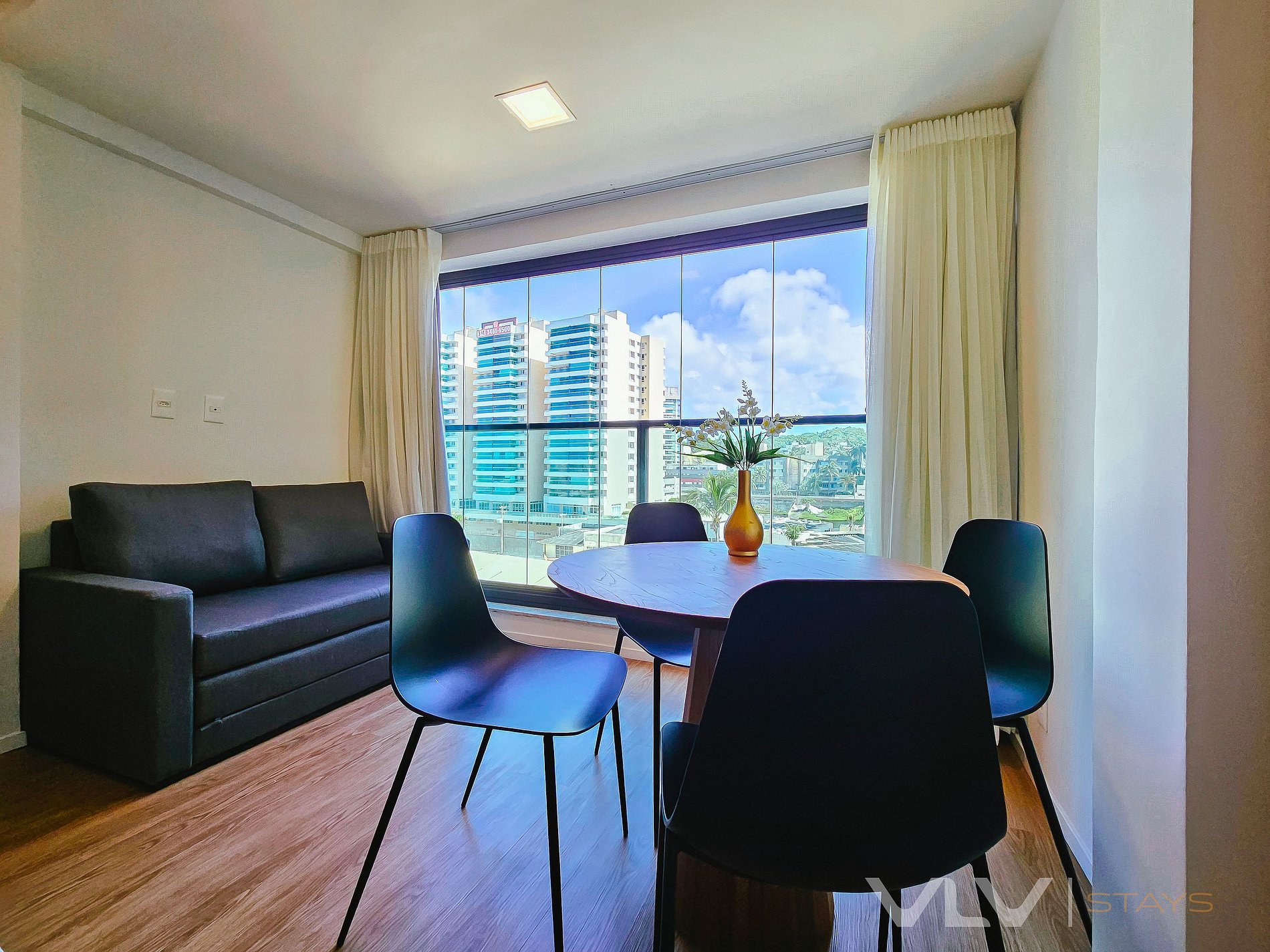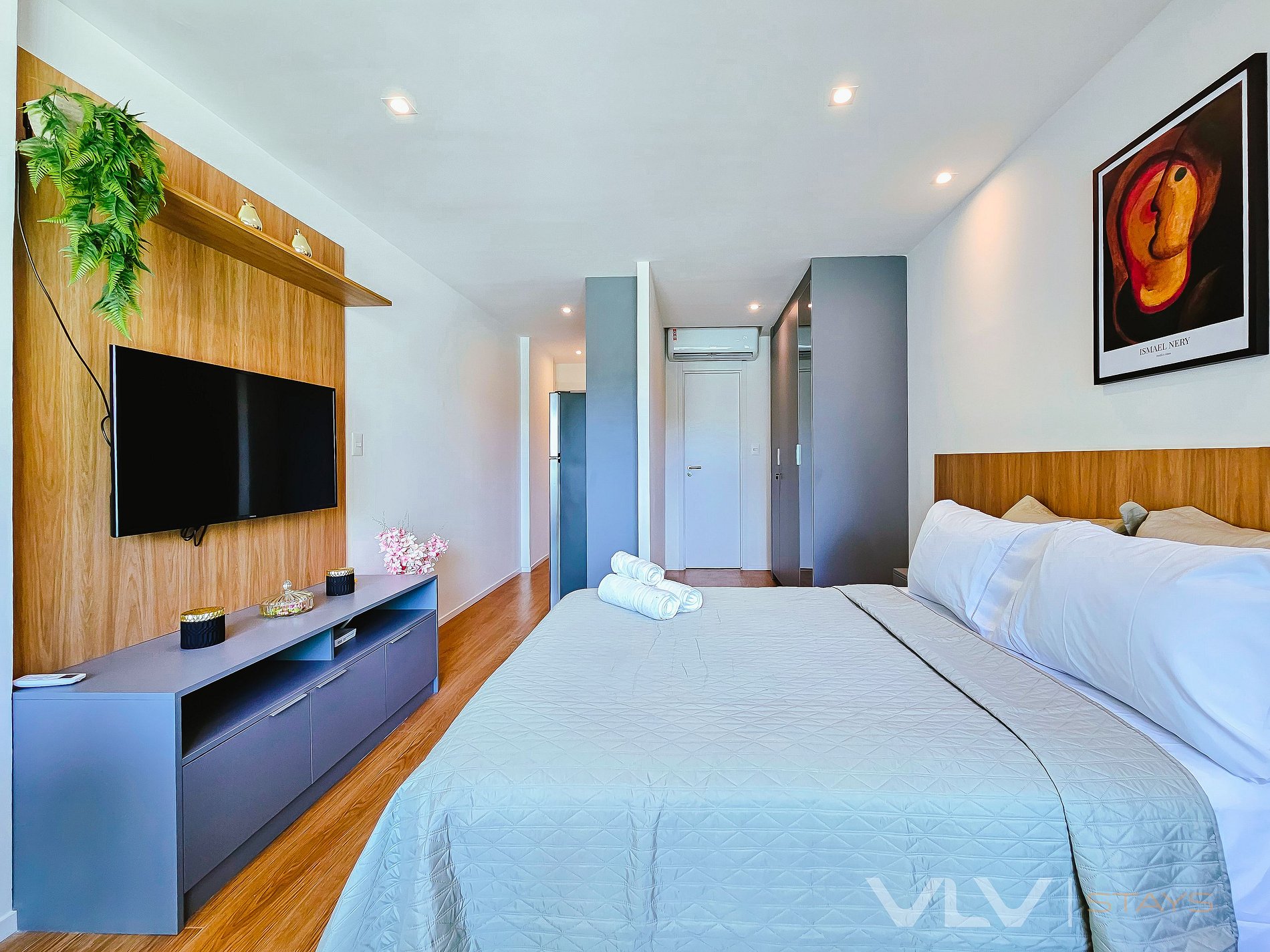 Enjoy a modern, cozy, and beautifully decorated studio located right in front of Armação Beach. The space features a double bed, a fully equipped kitchen, fast Wi-Fi, and everything you need to feel at home.
