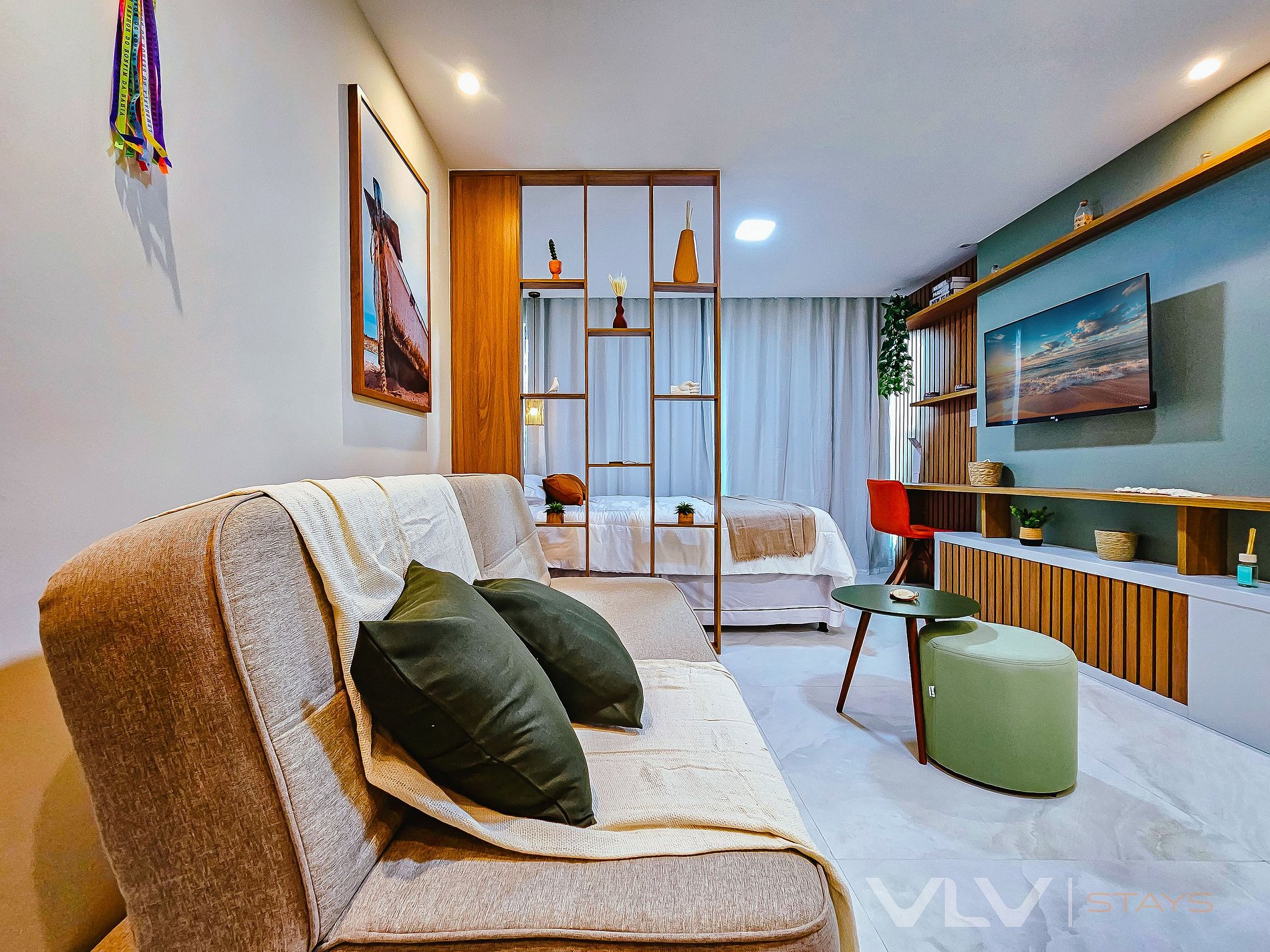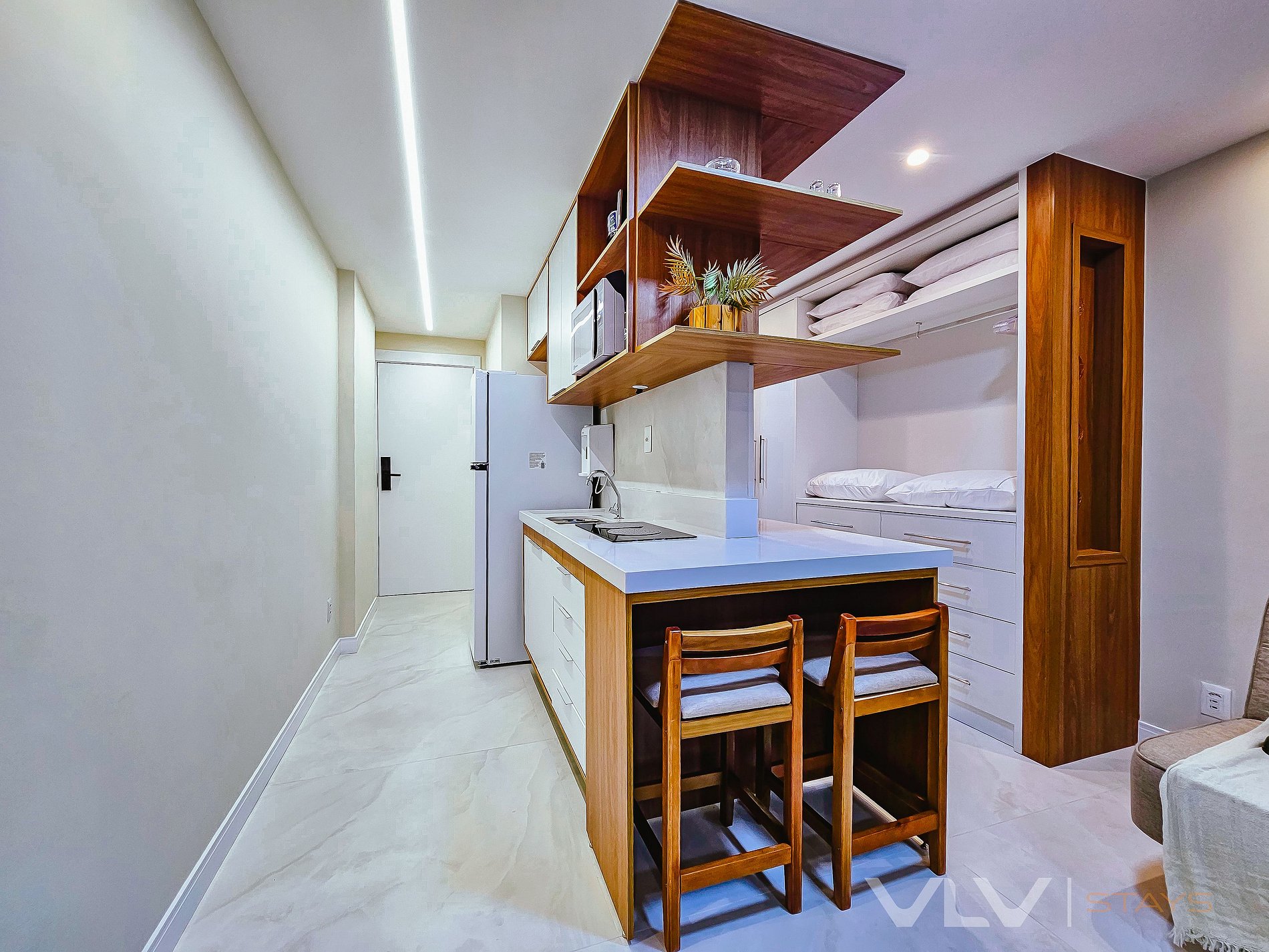 Enjoy a modern, cozy, and beautifully decorated studio located right in front of Armação Beach. The space features a queen bed size, a fully equipped kitchen, fast Wi-Fi, and everything you need to feel at home.