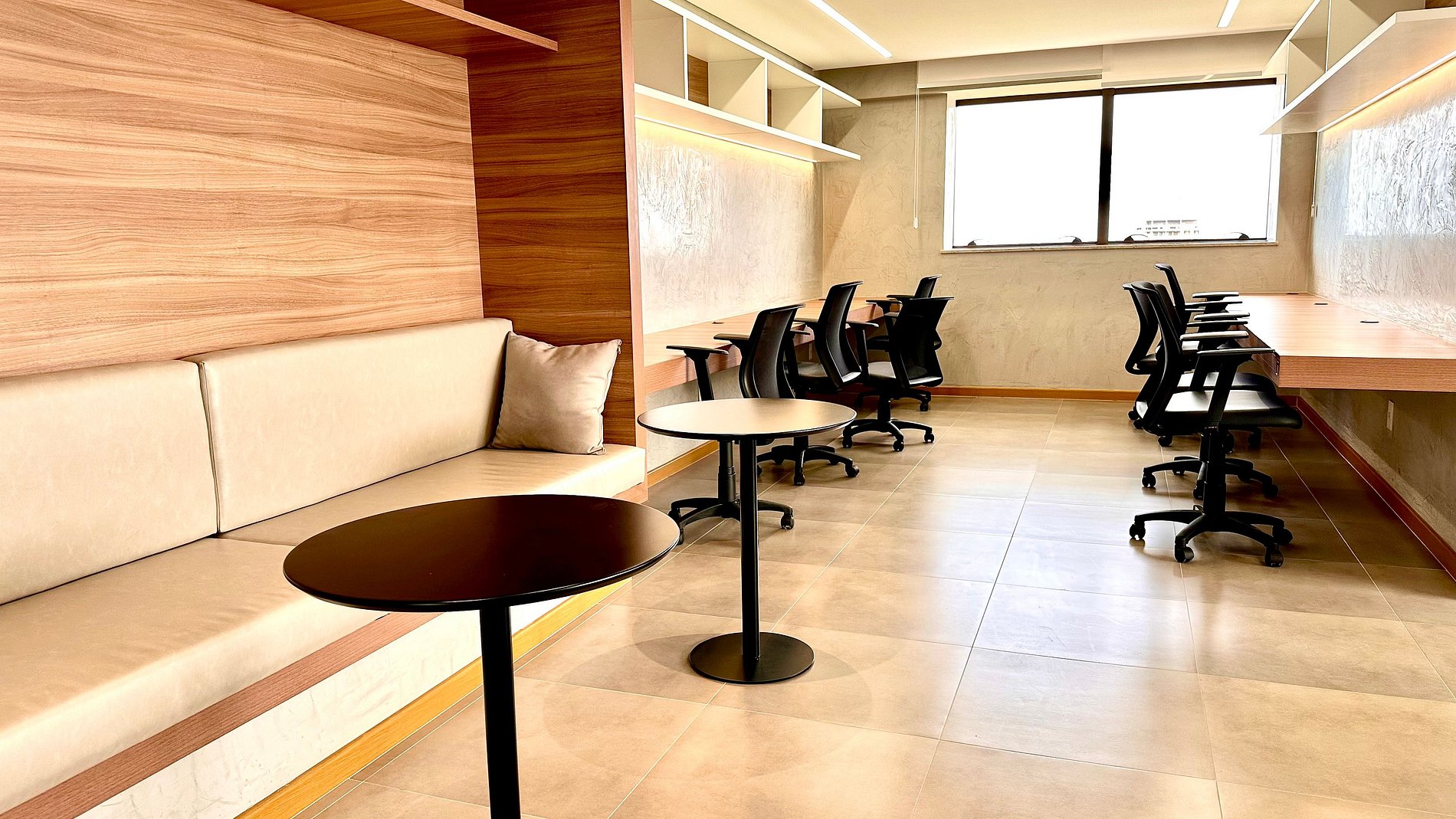 The coworking space and meeting room are available upon availability, the meeting room must be booked.