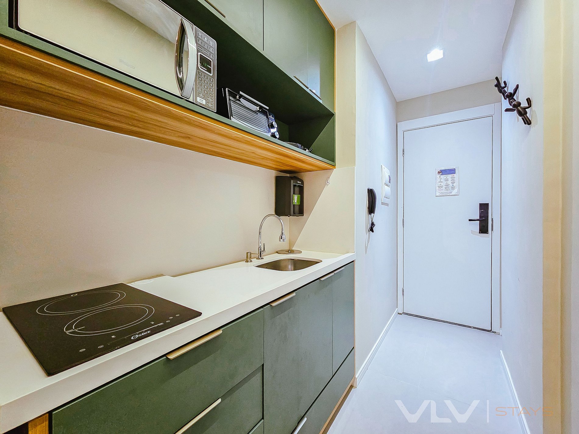 Total Comfort: Modern, fully equipped studios with a complete kitchen, air conditioning, and high-speed Wi-Fi, giving you the freedom to feel at home.