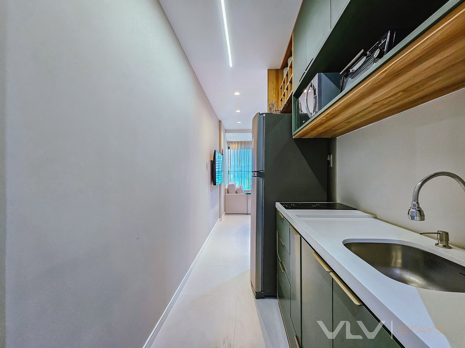 Enjoy a modern, cozy, and beautifully decorated studio located right in front of Armação Beach. The space features a double bed, sofa-bed, a fully equipped kitchen, fast Wi-Fi, and everything you need to feel at home.