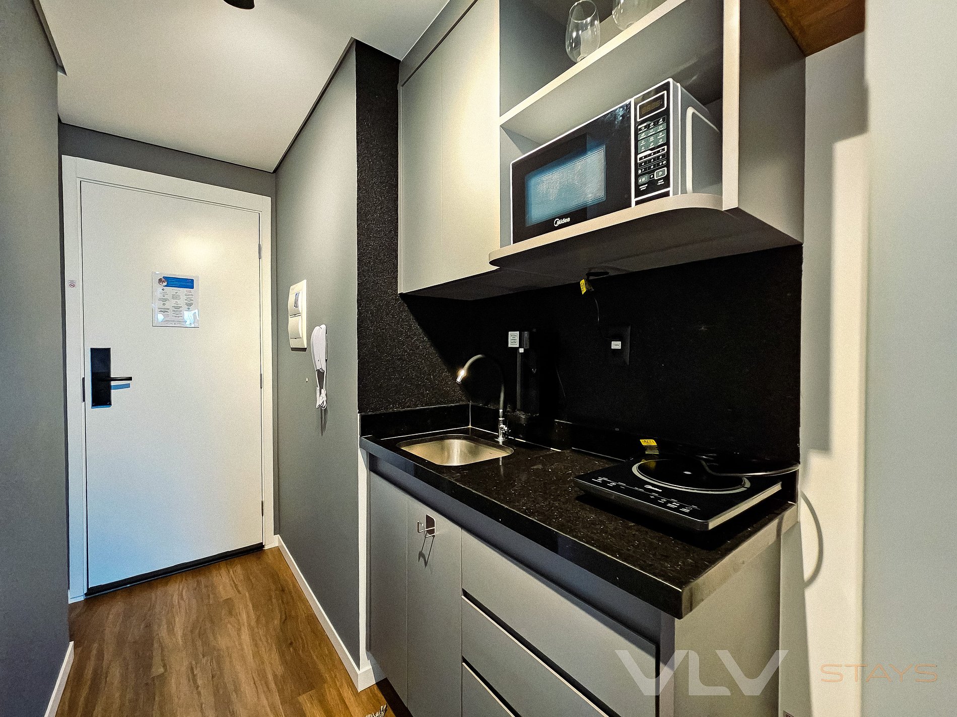 Conforto total: Studios modernos e bem equipados, com cozinha completa, ar-condicionado, e Wi-Fi de alta velocidade, para que você tenha toda a liberdade de se sentir em casa.