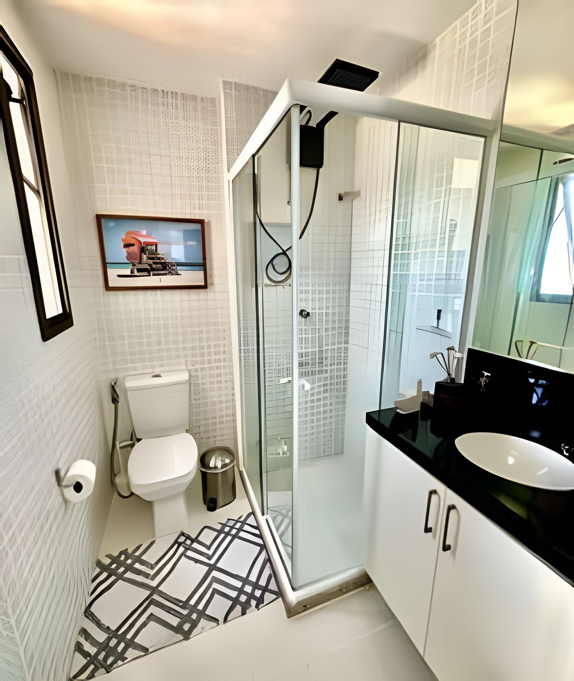 Condomínio dispõe: Portaria 24h, elevadores, cameras de segurança, academia climatizada com vista ao mar, lavanderia (paga), coworking, salão de festa, garagem coberta(rotativa mediante disponibilidade), interfone, piscina na cobertura com vista panorâmica para o mar. Hóspede com total acesso.