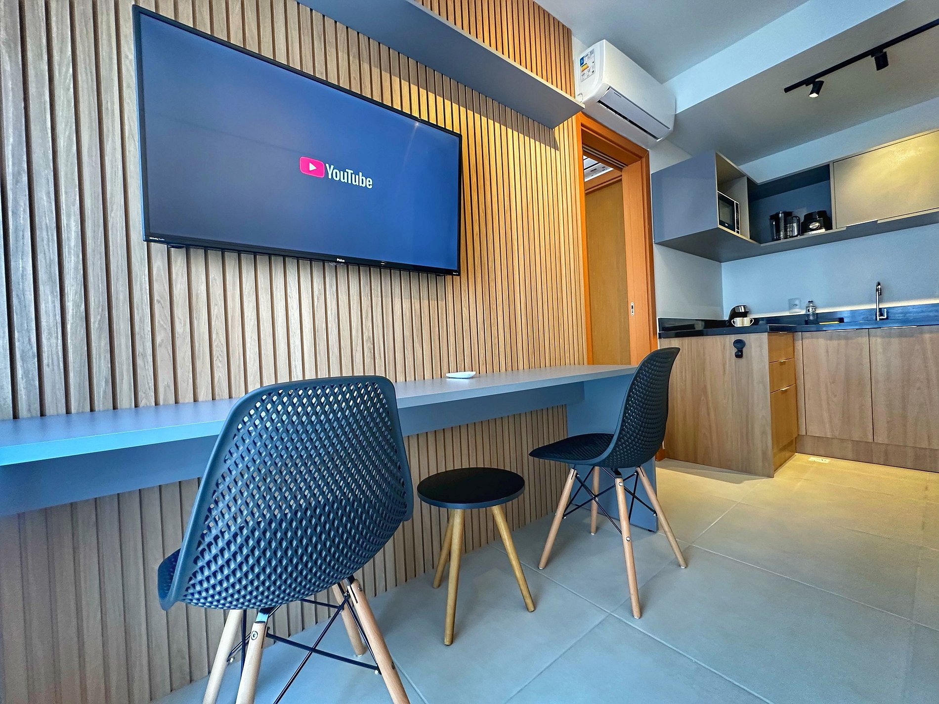 Aqui você tem tudo que você precisa em uma viagem de lazer ou mesmo de trabalho. O prédio conta com mini mercado interno do tipo "grab and go" 24 horas, um super e charmoso coworking, um lounge incrível, academia, lavanderia, piscina no rooftop.