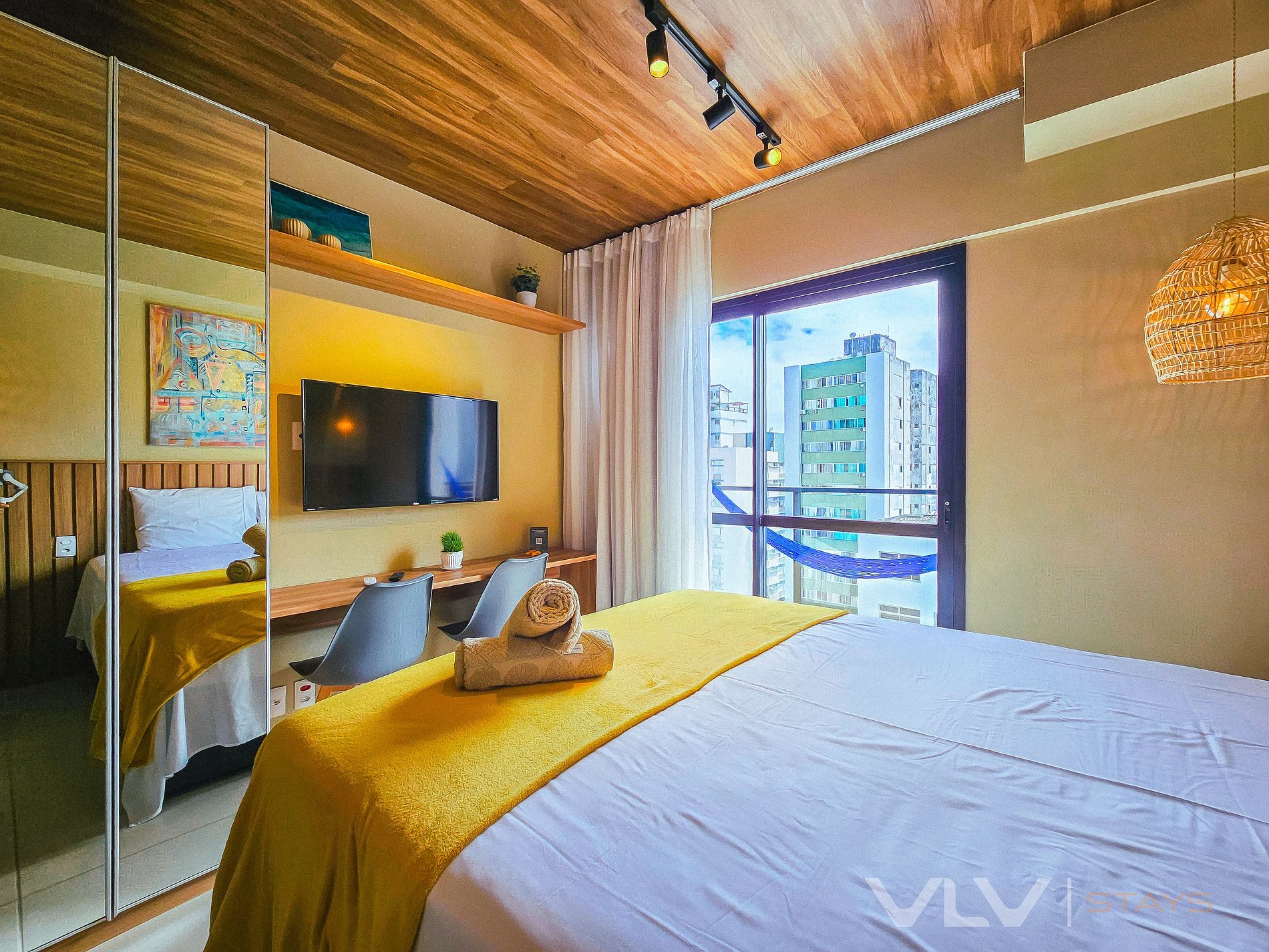 Este studio foi projetado para proporcionar conforto e praticidade em um único ambiente. Com uma decoração moderna e funcional, oferece tudo o que você precisa para uma estadia confortável em Salvador, seja a lazer ou a trabalho.