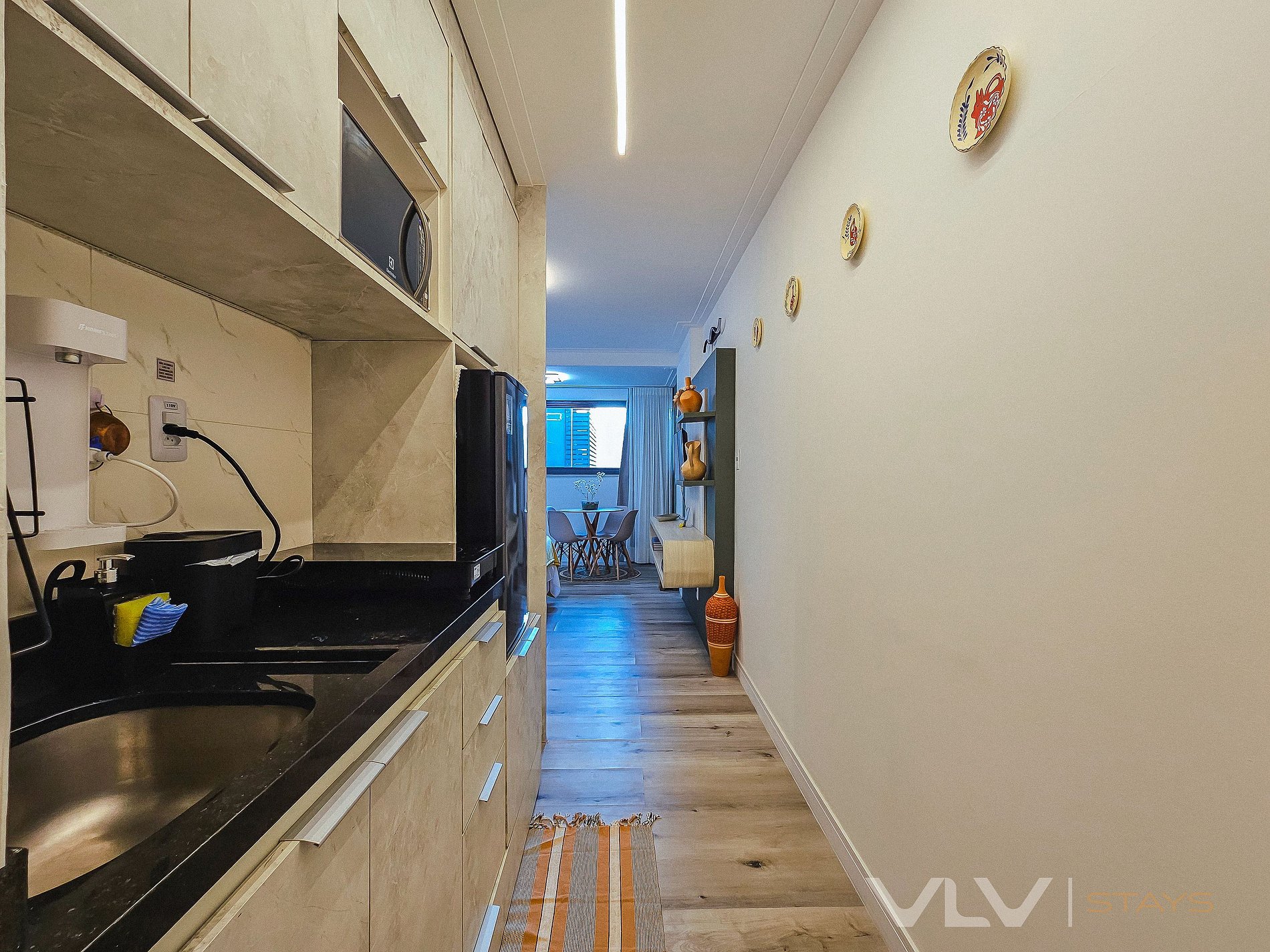 Conforto total: Studios modernos e bem equipados, com cozinha completa, ar-condicionado, e Wi-Fi de alta velocidade, para que você tenha toda a liberdade de se sentir em casa.