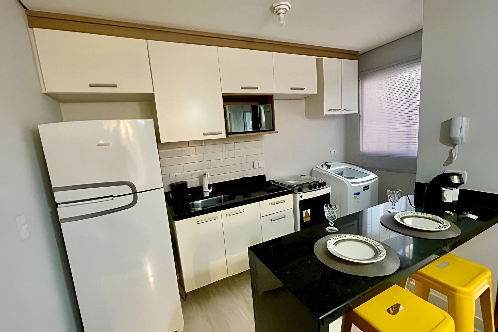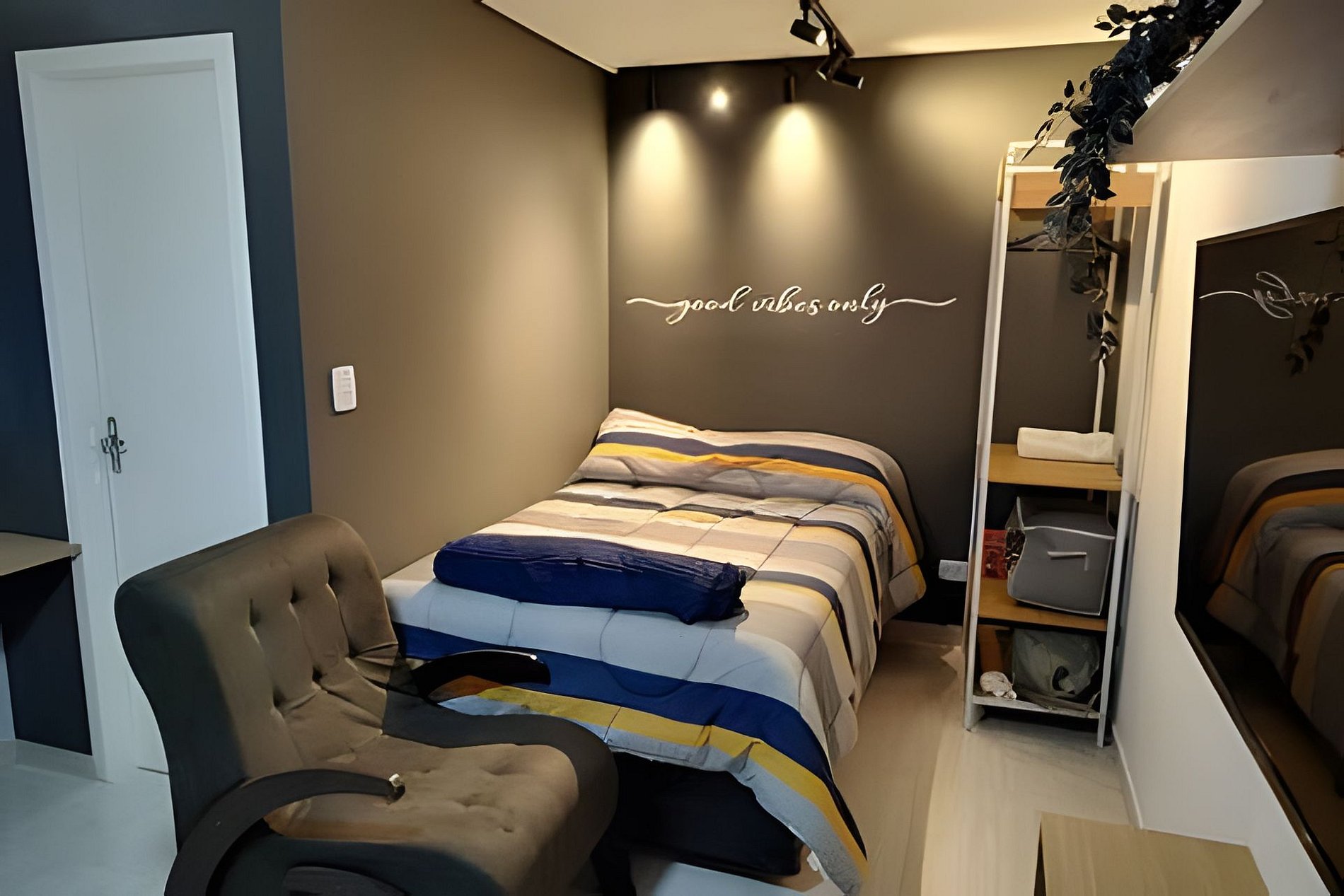 Relaxe neste espaço calmo e cheio de estilo e com muita segurança. Aconchegante Studio, seguro e cuidadosamente pensado para oferecer um ambiente de Qualidade para uma experiência inesquecível. No pequeno espaço há tudo o que você precisa tal como banheiro com blindex, cozinha completa, fogão, geladeira, microondas, cafeteira, lava roupa, sala com televisão, cama de casal e roupeiro. Temos wifi. O condomínio está a menos de 50 metros do premiado Restaurante Mocotó. Há mercado e padaria perto.