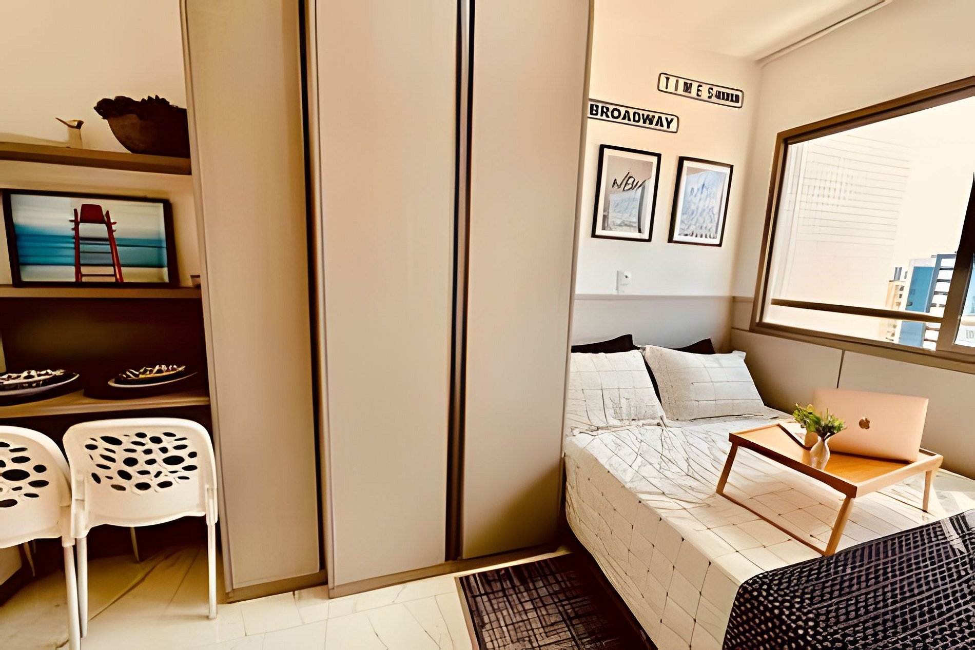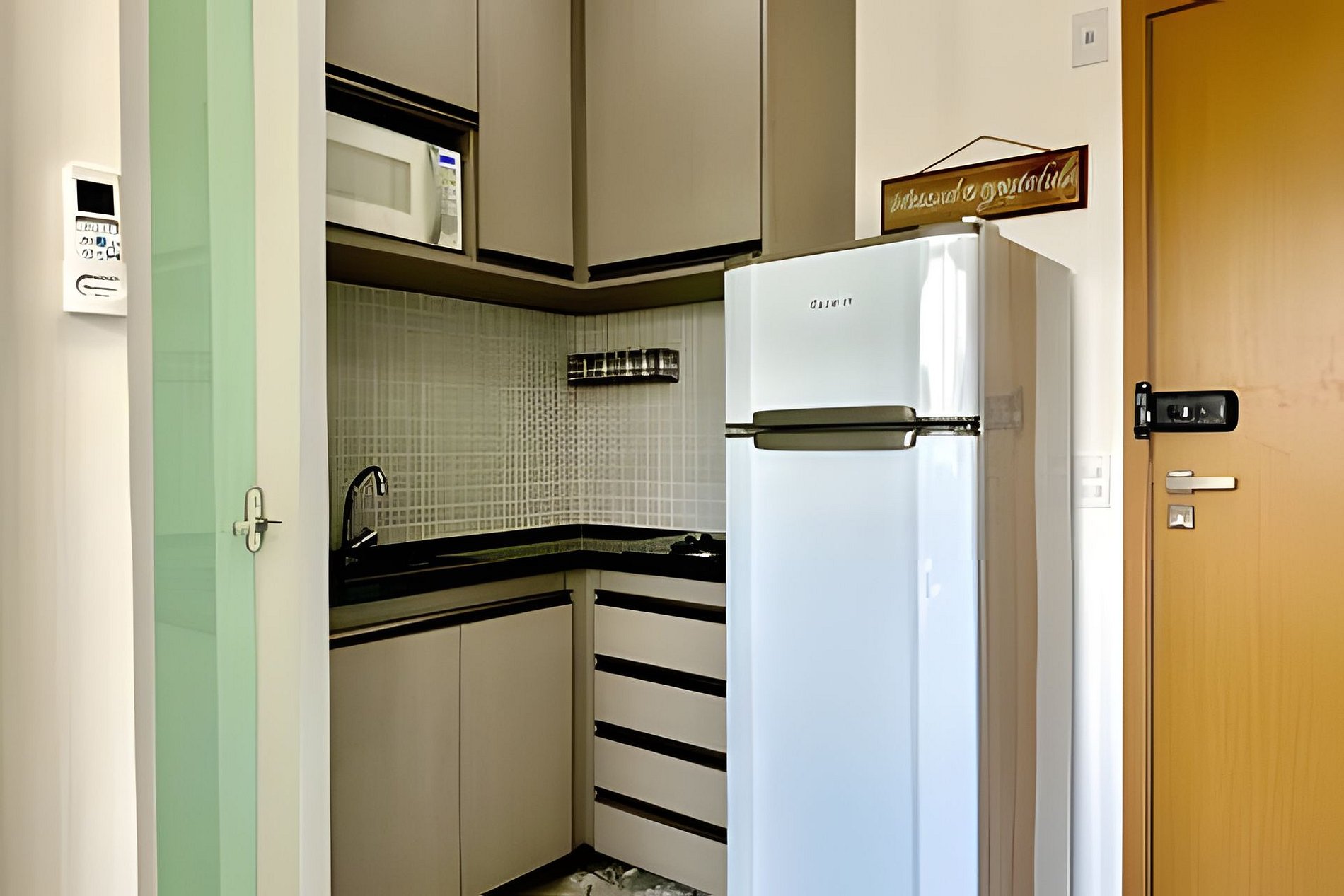 O estúdio, oferece um ambiente interno elegante e funcional. Com uma decoração charmosa, o espaço é climatizado (split) para o seu conforto. A cozinha completa (cooktop 2 bocas, geladeira, microondas, pratos, panelas, talheres, copos, taças, utensilios de cozinha, cafeteira smart) permite que você cozinhe com facilidade e prepare suas refeições favoritas. Além disso, o banheiro dispõe de um chuveiro com água quente e você também encontrará uma TV smart logada no Netflix para seu entretenimento.