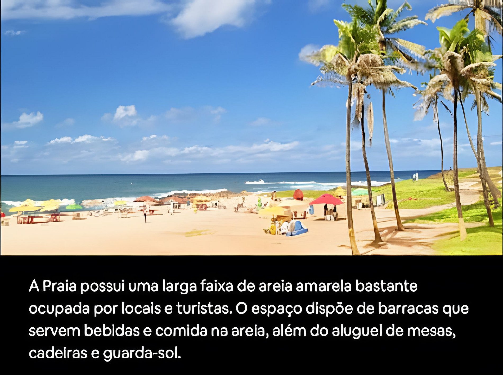 Prédio novo muito bem localizado em área residencial, estacionamento rotativo no prédio, com muitos serviços por perto, que faz caminhando, sendo que a praia está localizada metros a frente e conta com serviço de massagem diariamente -pago (muito bom) e quiosque de açaí e agua de coco. No entorno de nosso espaço temos ainda bares e restaurantes (Rei do Pirão, Boteco do Caranguejo, Espetto Baiano, Pai Inácio, Caranguejo da Villa), mercados (Gbarbosa, Bompreço), fast-food (MacDonalds, Açaí Granola), delicatéssen (Delifrutas, Select), shopping (Salvador, da Bahia).