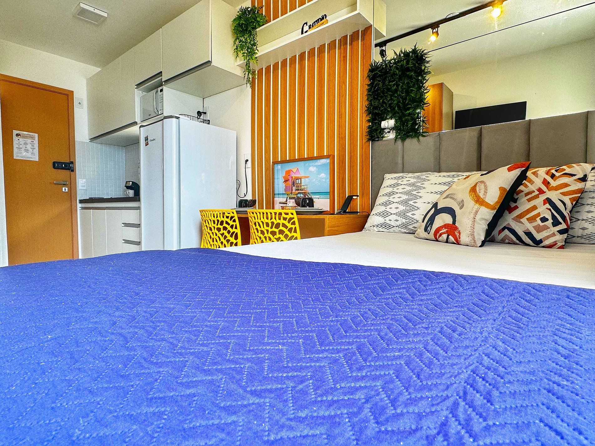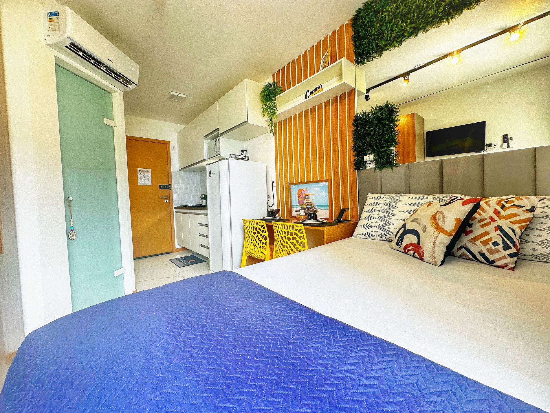 Studio VISTA MAR decorado com muito amor pensado em cada detalhe para proporcionar que o hóspede possa relaxar e desfrutar de uma experiência incrível, com uma decoração cheia de estilo. Buscamos superar as expectativas, proporcionando um despertar ao som & vista azul do mar. O prédio tem uma piscina com vista fantástica no rooftop, academia, cowork, lavanderia e estacionamento. O stúdio cheio de estilo, com espaço aconchegante e perfeito para quem busca uma experiência única em Salvador.
