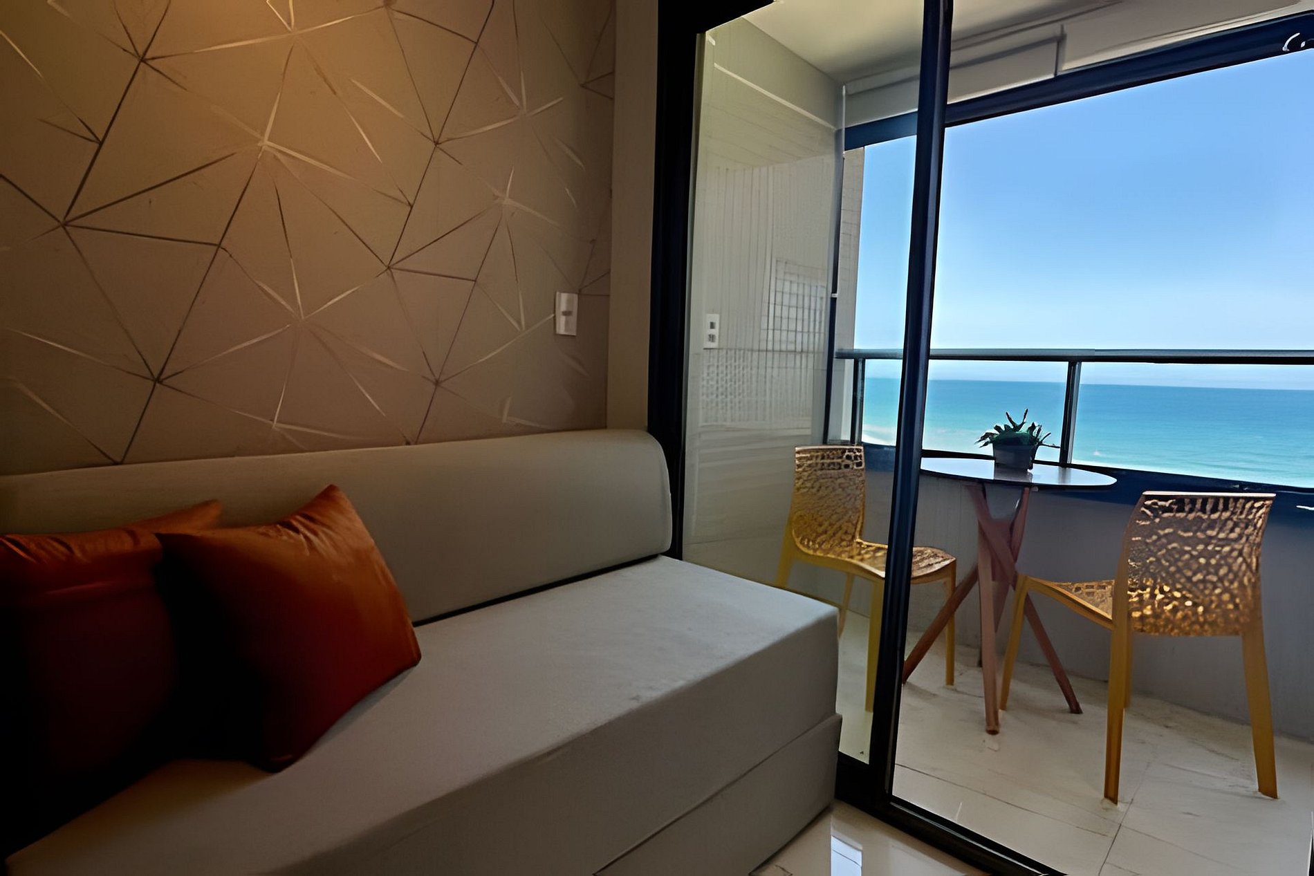 Quarto e sala cheio de estilo em excelente localização, VISTA MAR, com espaço aconchegante e moderno, perfeito para quem busca uma experiência única em Salvador. Venha acordar e relaxar ao delicioso som do mar. O prédio tem piscina com vista fantástica no rooftop, academia, cowork, lavanderia e estacionamento. Temos o espaço ideal! Importante: Ar condicionado no quarto e sala com ventilador. O sofá-cama da sala é ideal para uma pessoa. Se forem duas, é importante que sejam pequenas (até 1,70m).