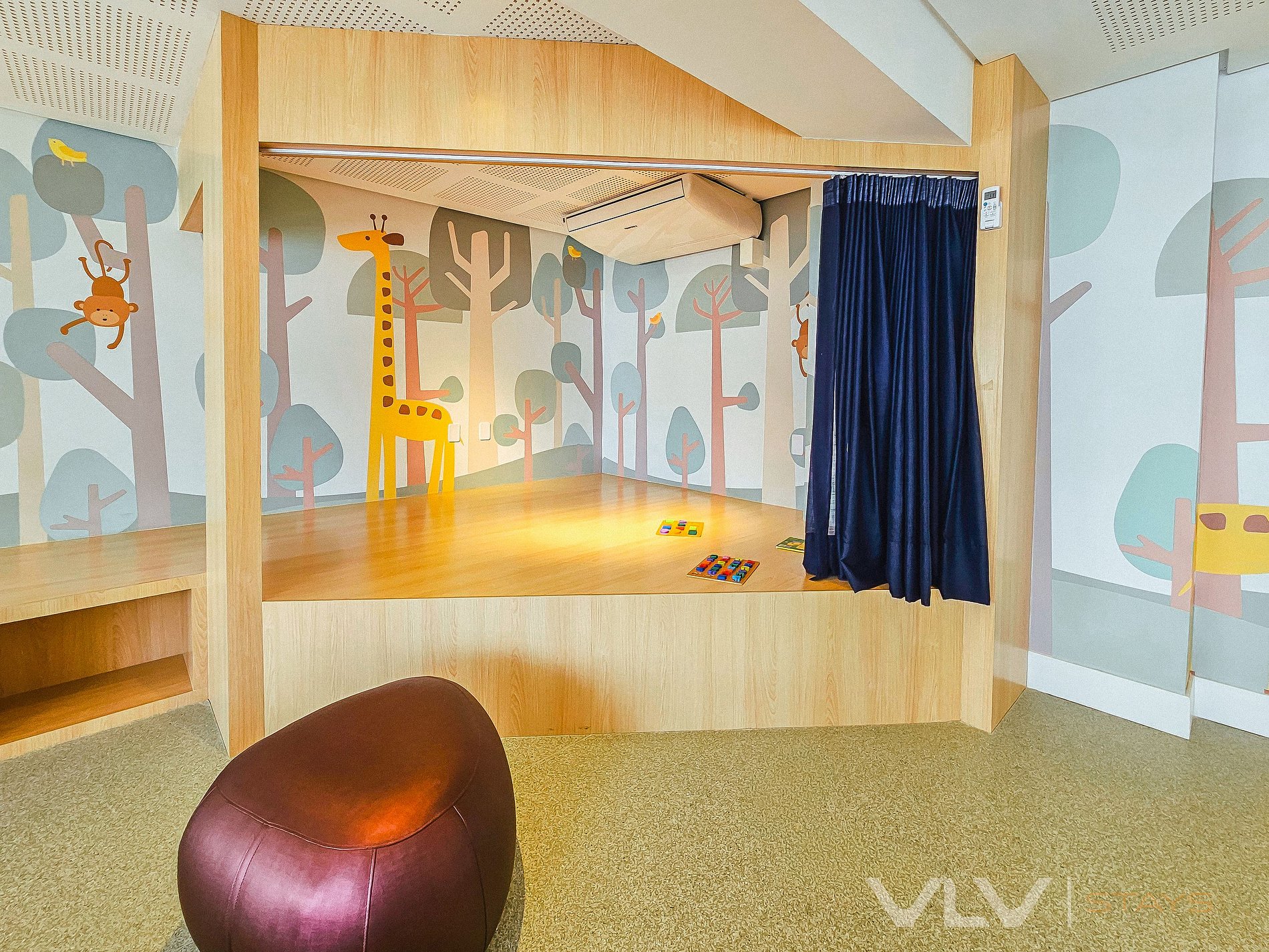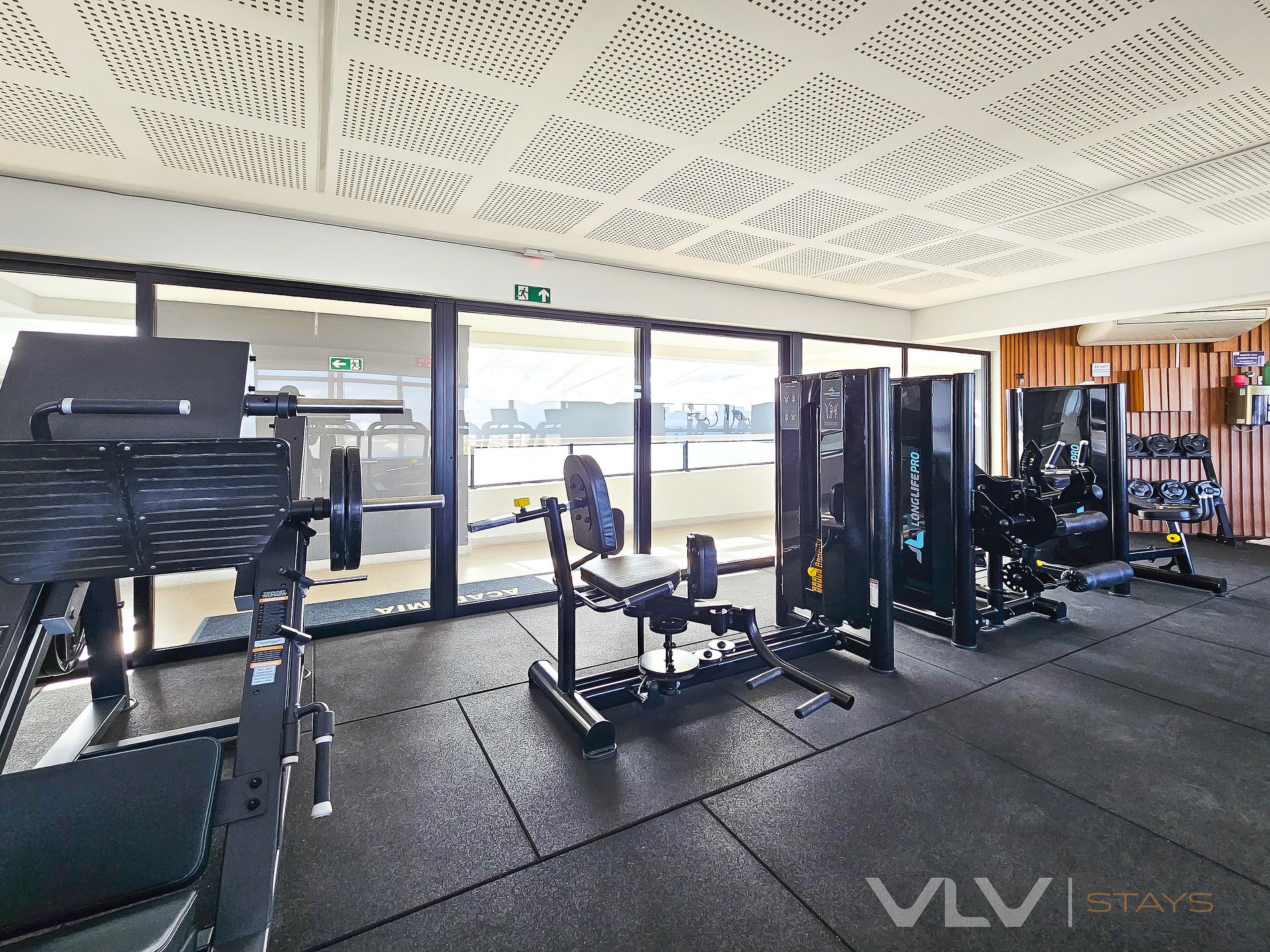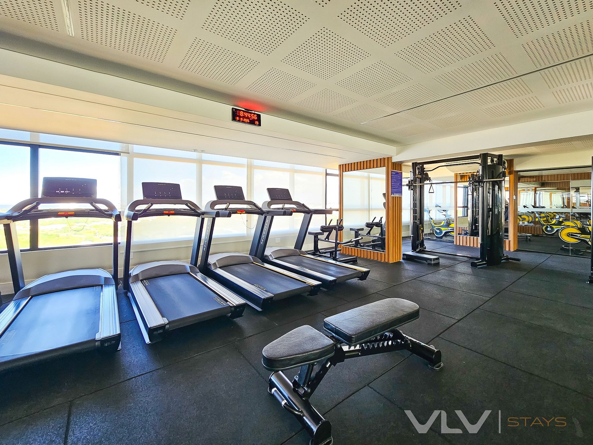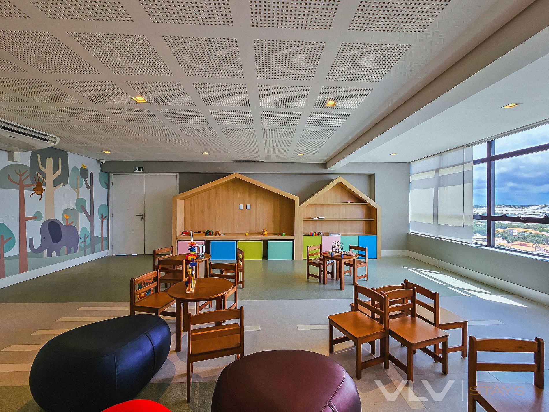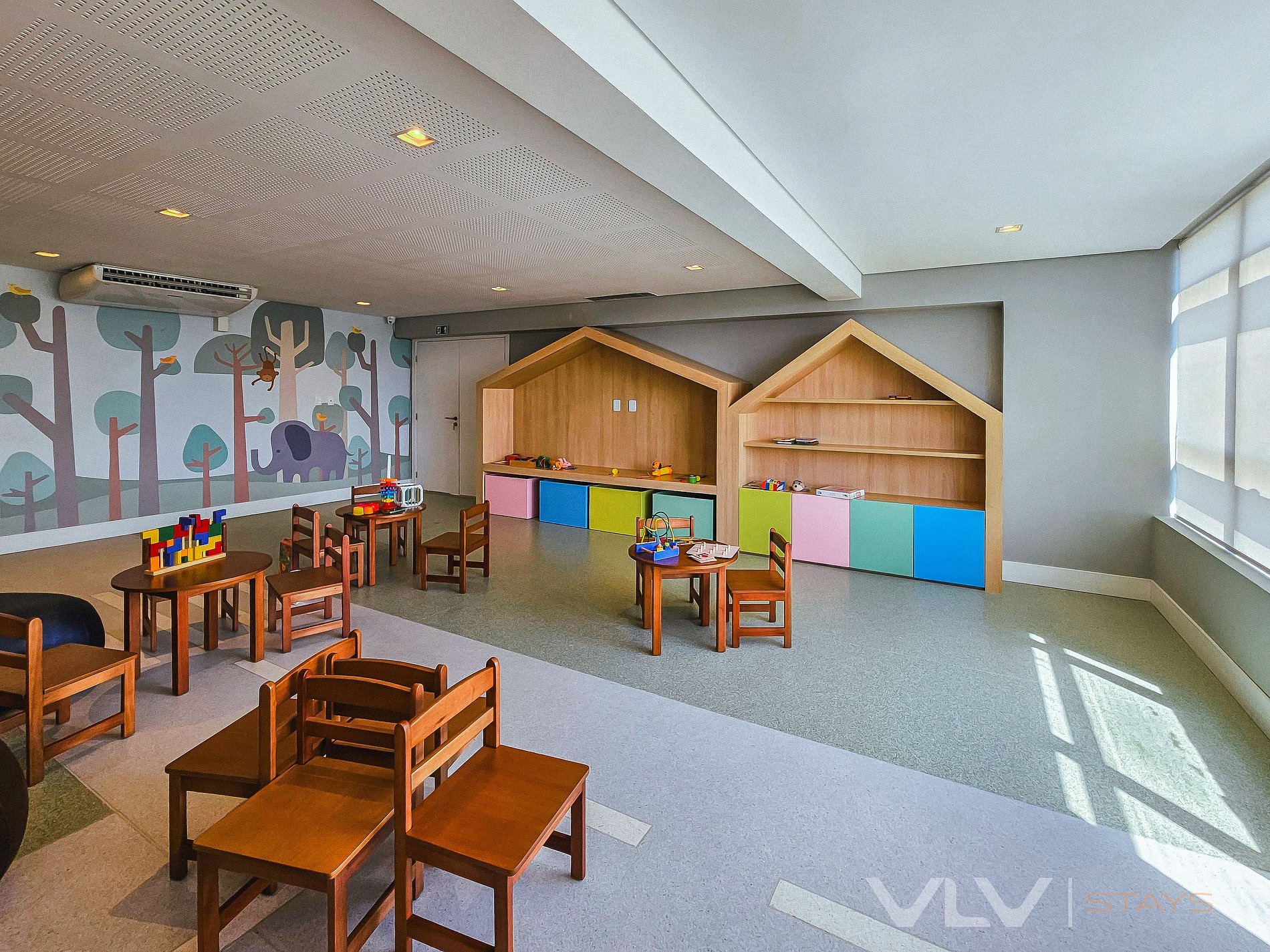Os hóspedes podem usufruir da academia, piscina, brinquedoteca e coworking.