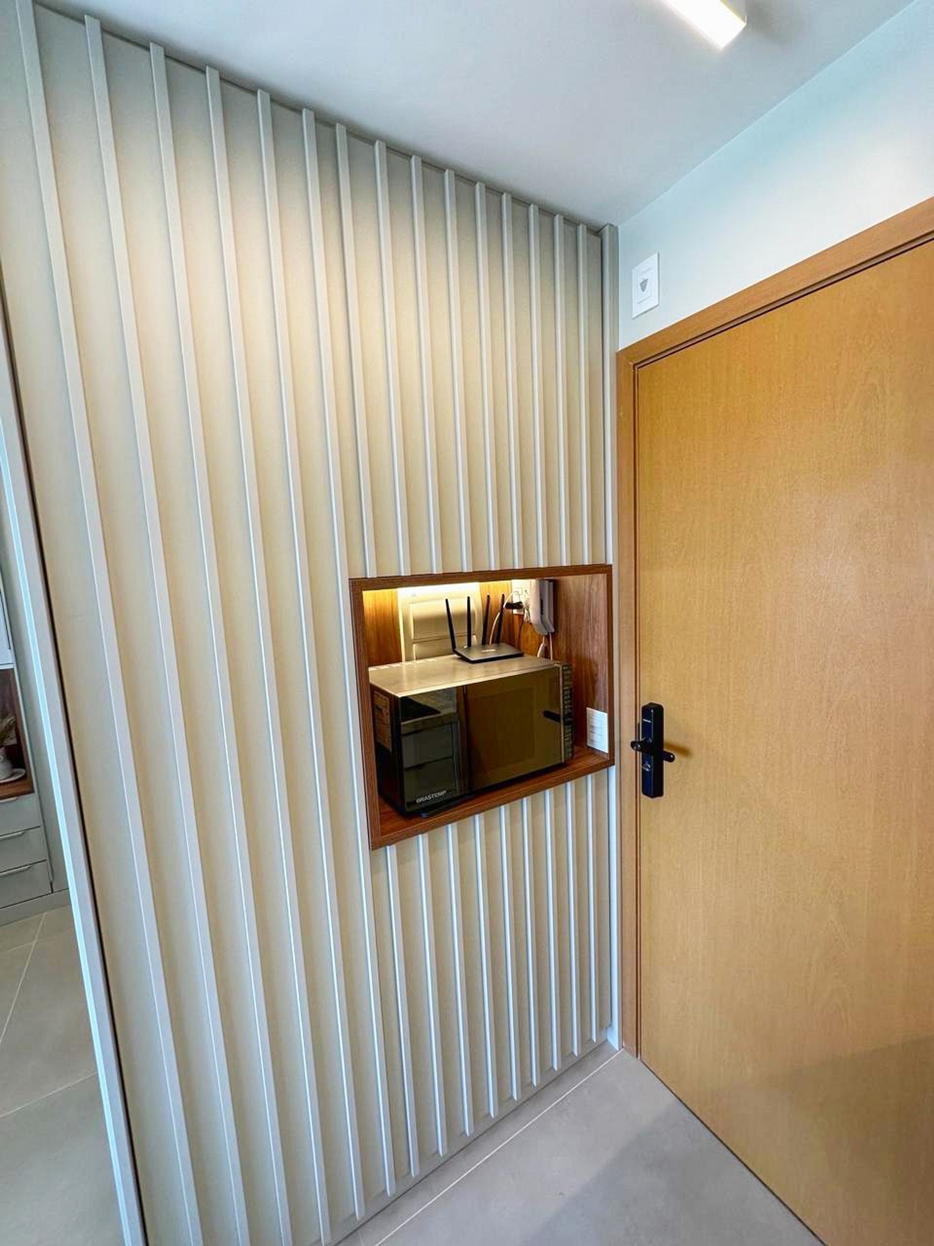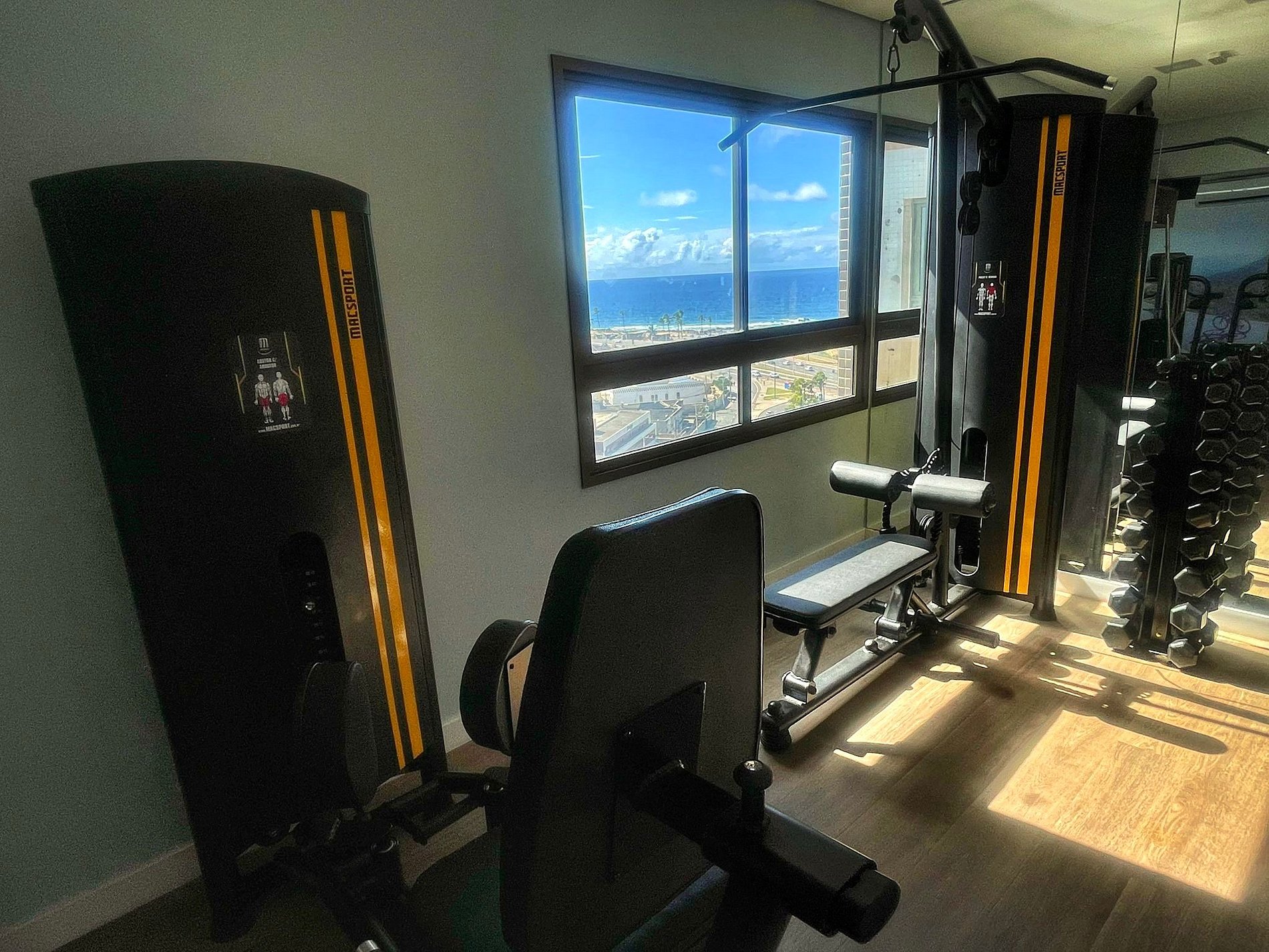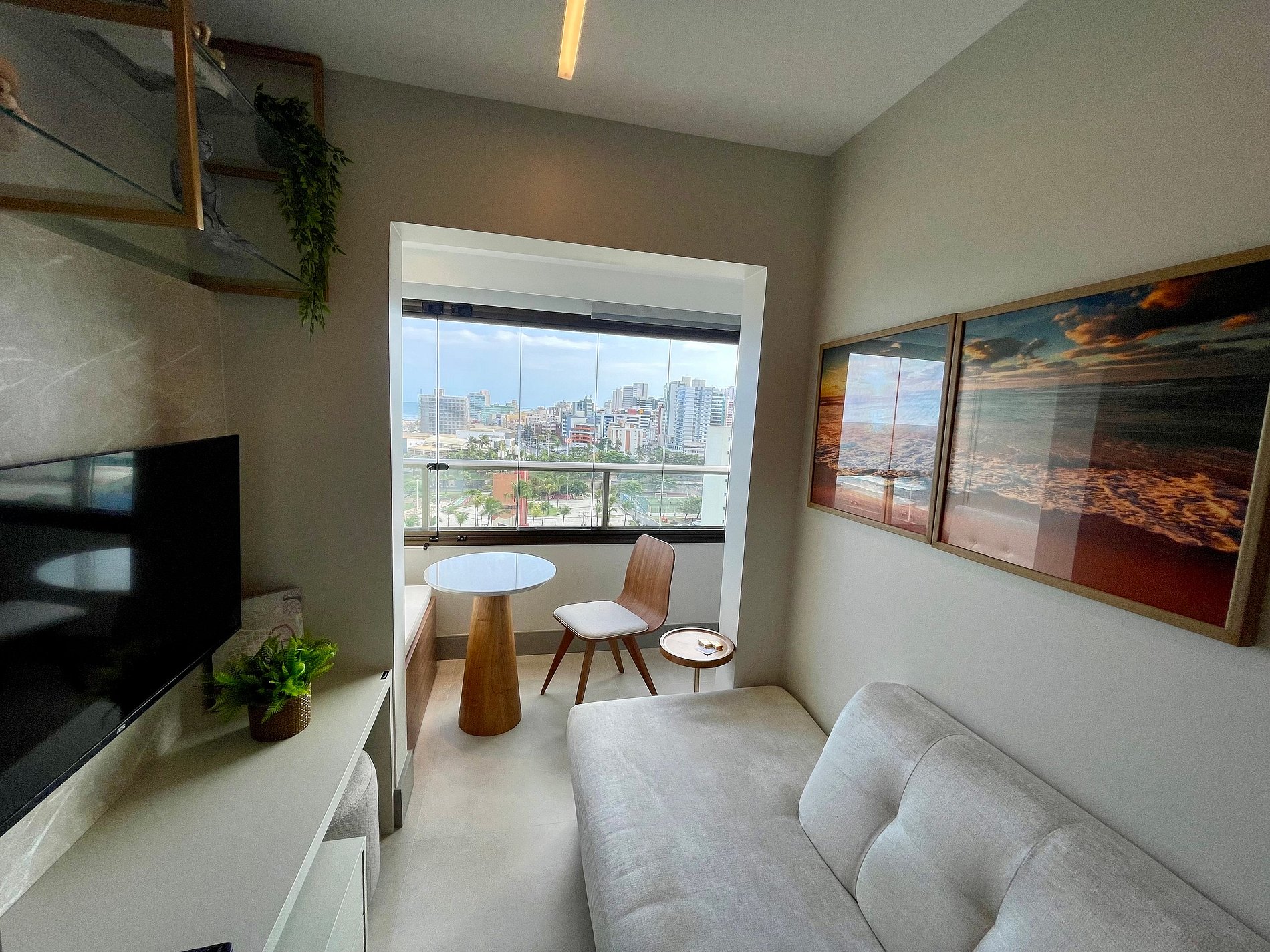 Condomínio dispõe: Portaria 24h, elevadores, cameras de segurança, academia climatizada com vista ao mar, lavanderia, coworking, salão de festa, garagem coberta(rotativa), interfone, piscina na cobertura com vista panorâmica para o mar. Hóspede com total acesso.