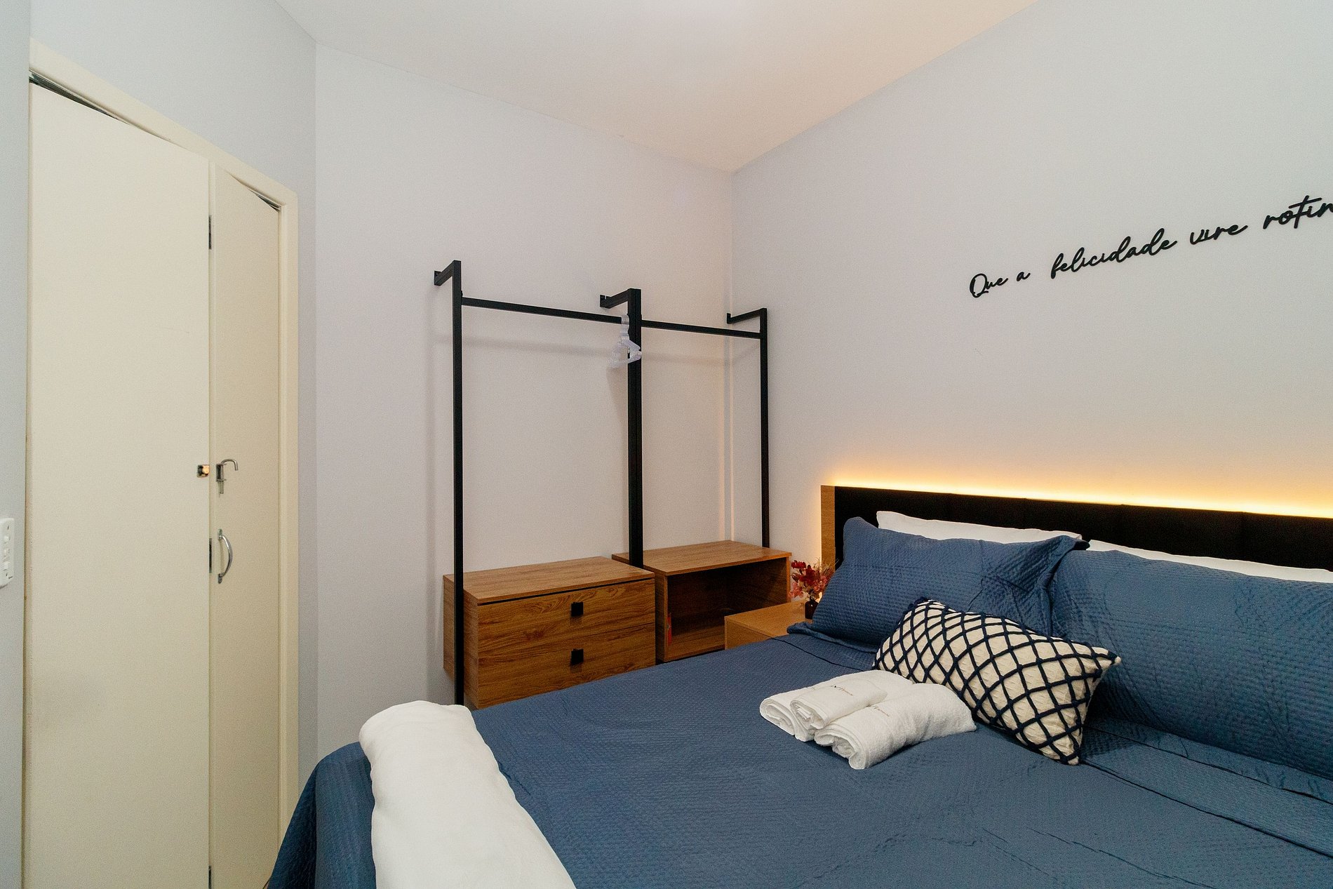 Aconchegante quarto e sala, seguro e cuidadosamente pensado para oferecer um ambiente de Qualidade para uma experiência inesquecível. No pequeno espaço há tudo o que você precisa tal como sala com Smart TV, sofa-cama, cama de casal, guarda-roupa banheiro com box blindex, cozinha com armários e utensílios, fogão, geladeira, microondas , maquina de lavar e lavanderia. Temos WIFi. O condomínio está a 50 metros do famoso restaurante Mocotó do Master Chef da Band Rodrigo de Oliveira.