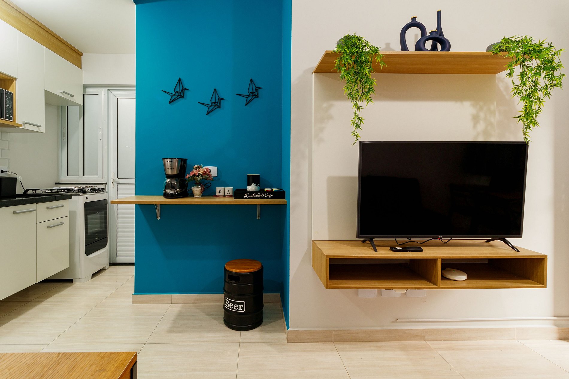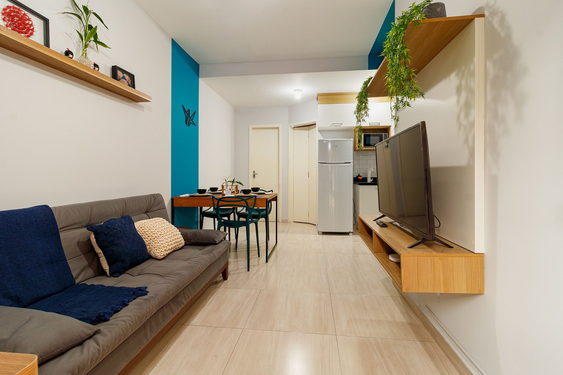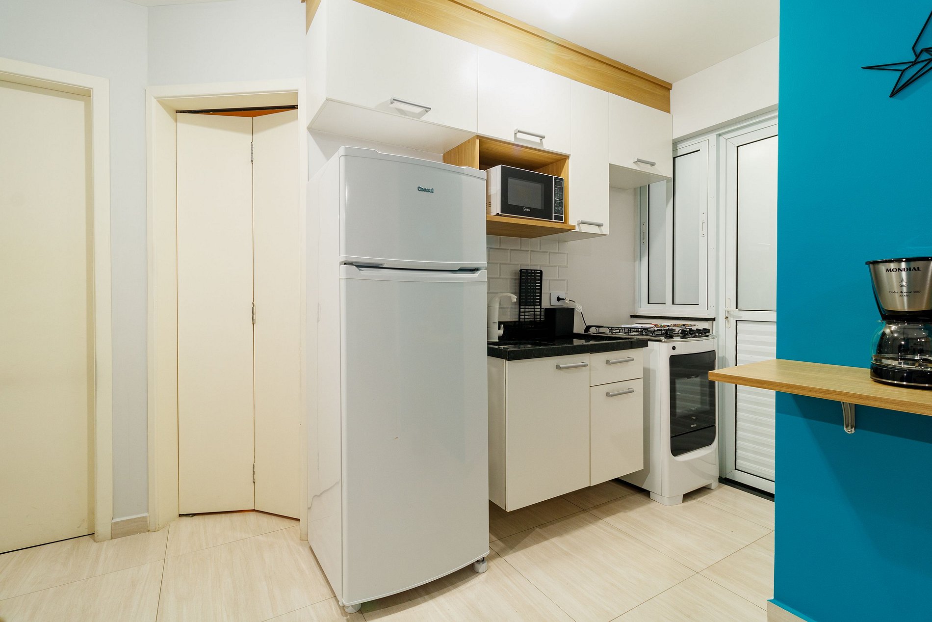Aconchegante quarto e sala, seguro e cuidadosamente pensado para oferecer um ambiente de Qualidade para uma experiência inesquecível. No pequeno espaço há tudo o que você precisa tal como sala com Smart TV, sofá-cama, cama de casal, guarda-roupa banheiro com box blindex, cozinha com armários e utensílios, fogão, geladeira, microondas , maquina de lavar e lavanderia. Temos WIFi. O condomínio está a 50 metros do famoso restaurante Mocotó do Master Chef da Band Rodrigo de Oliveira.
