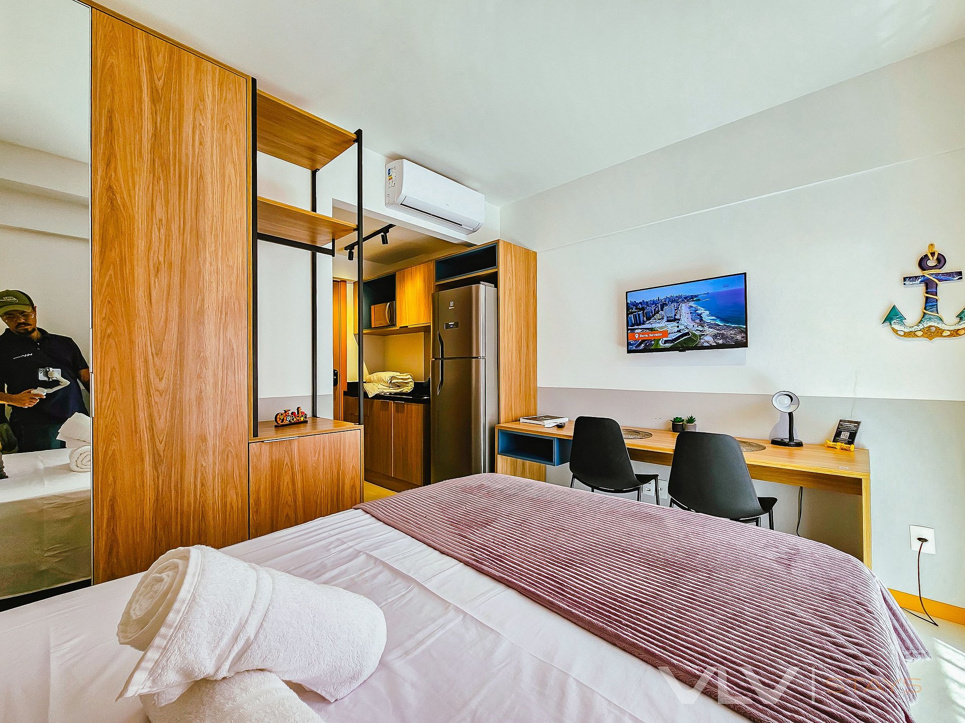 Este studio foi projetado para proporcionar conforto e praticidade em um único ambiente. Com uma decoração moderna e funcional, oferece tudo o que você precisa para uma estadia confortável em Salvador, seja a lazer ou a trabalho.
