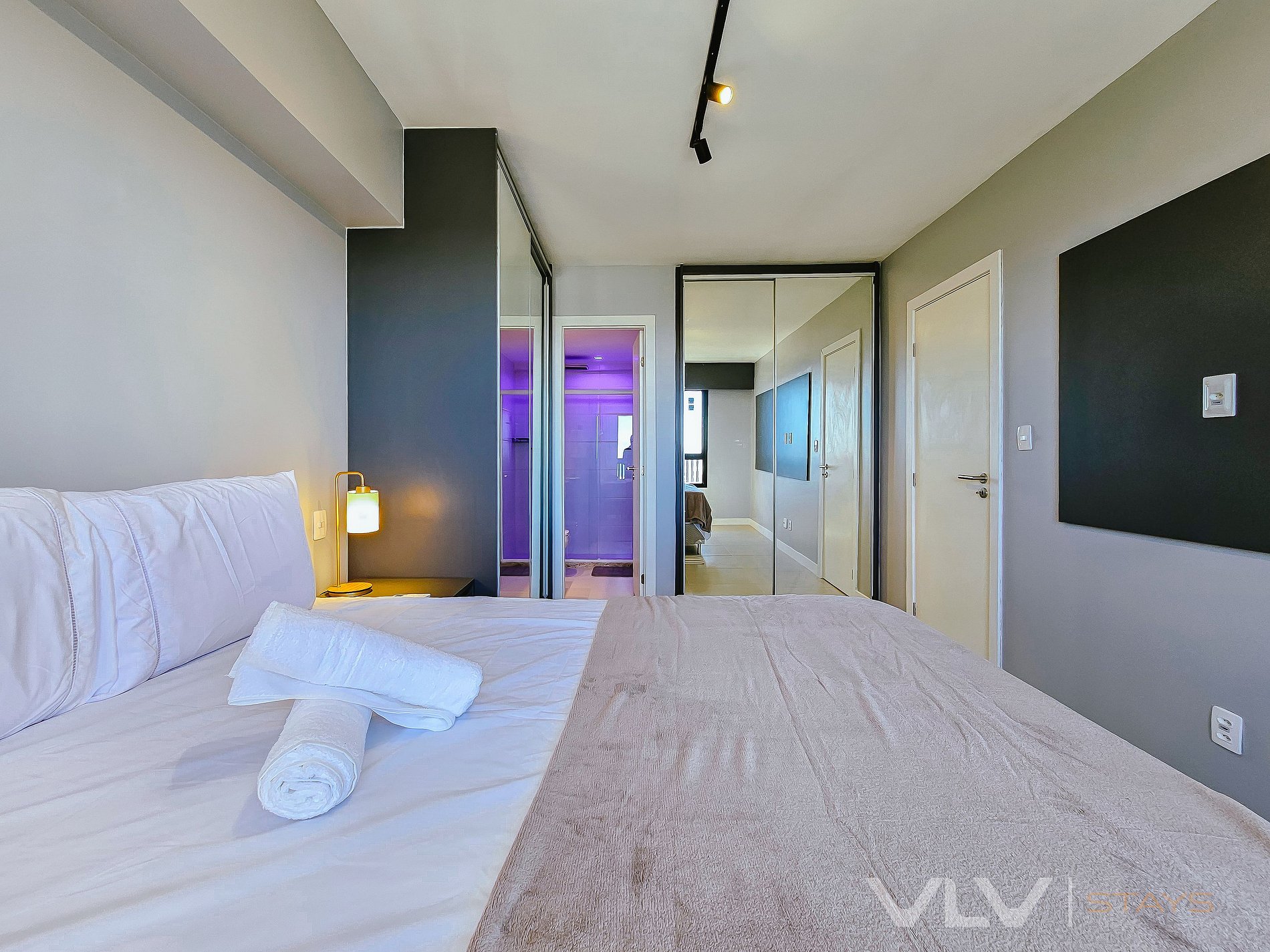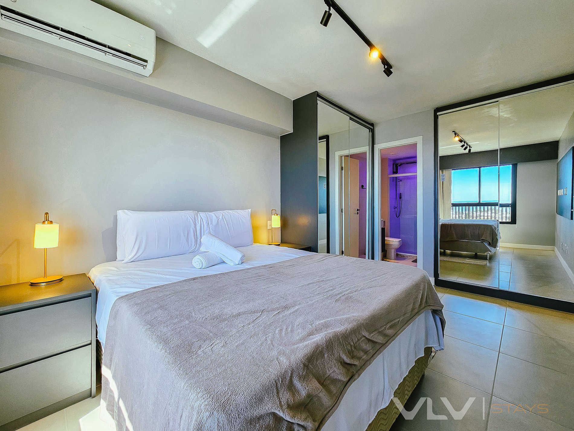 *Suíte Quarto - cama de casal KING, armário, banheiro, cortina blackout e ar condicionado.