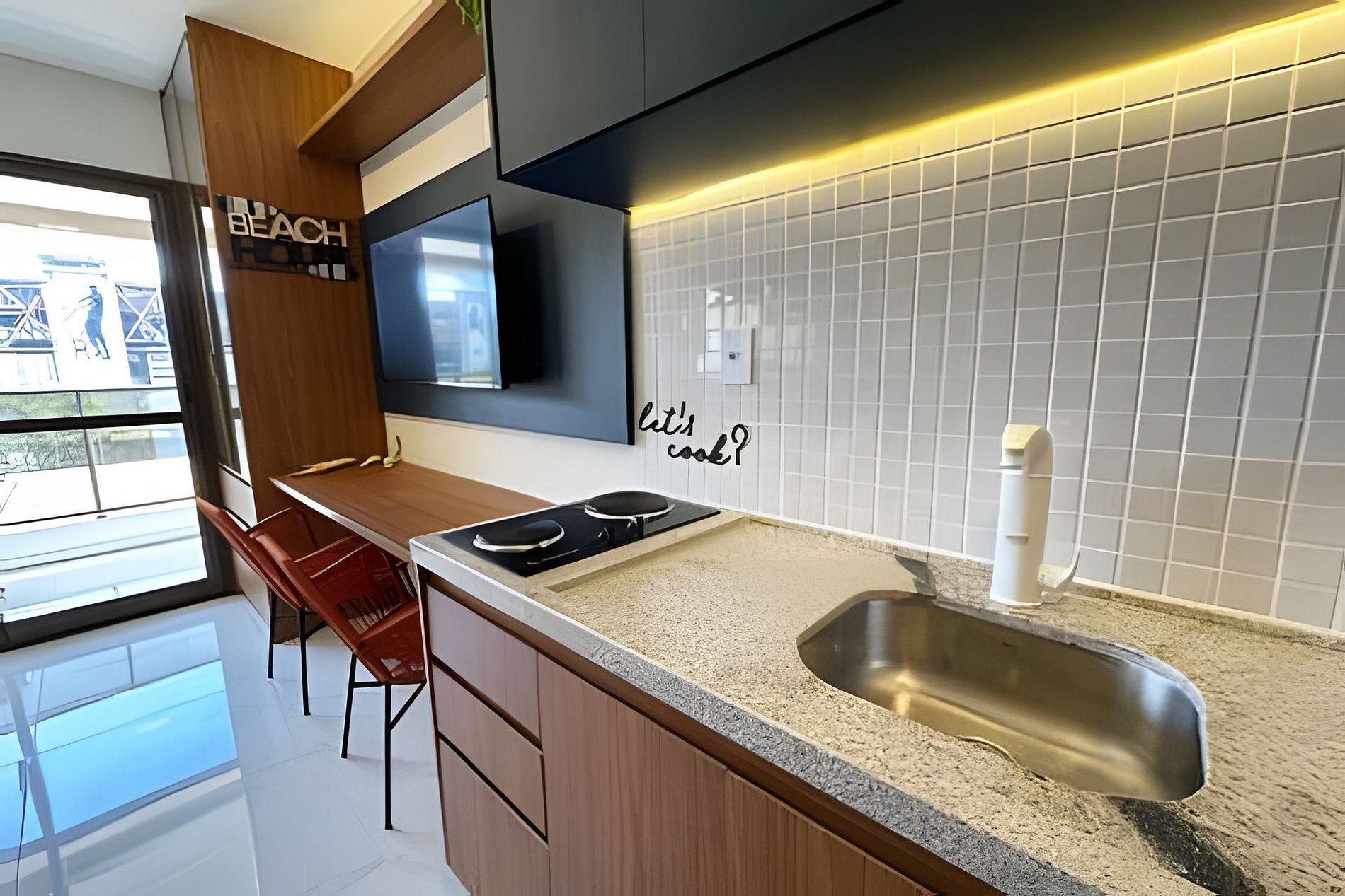 O edifício conta com portaria 24h, elevadores, lavanderia compartilhada, área de coworking, academia e garagem (verificar disponibilidade). Tudo pensado para quem busca comodidade, seja a lazer ou a trabalho.
