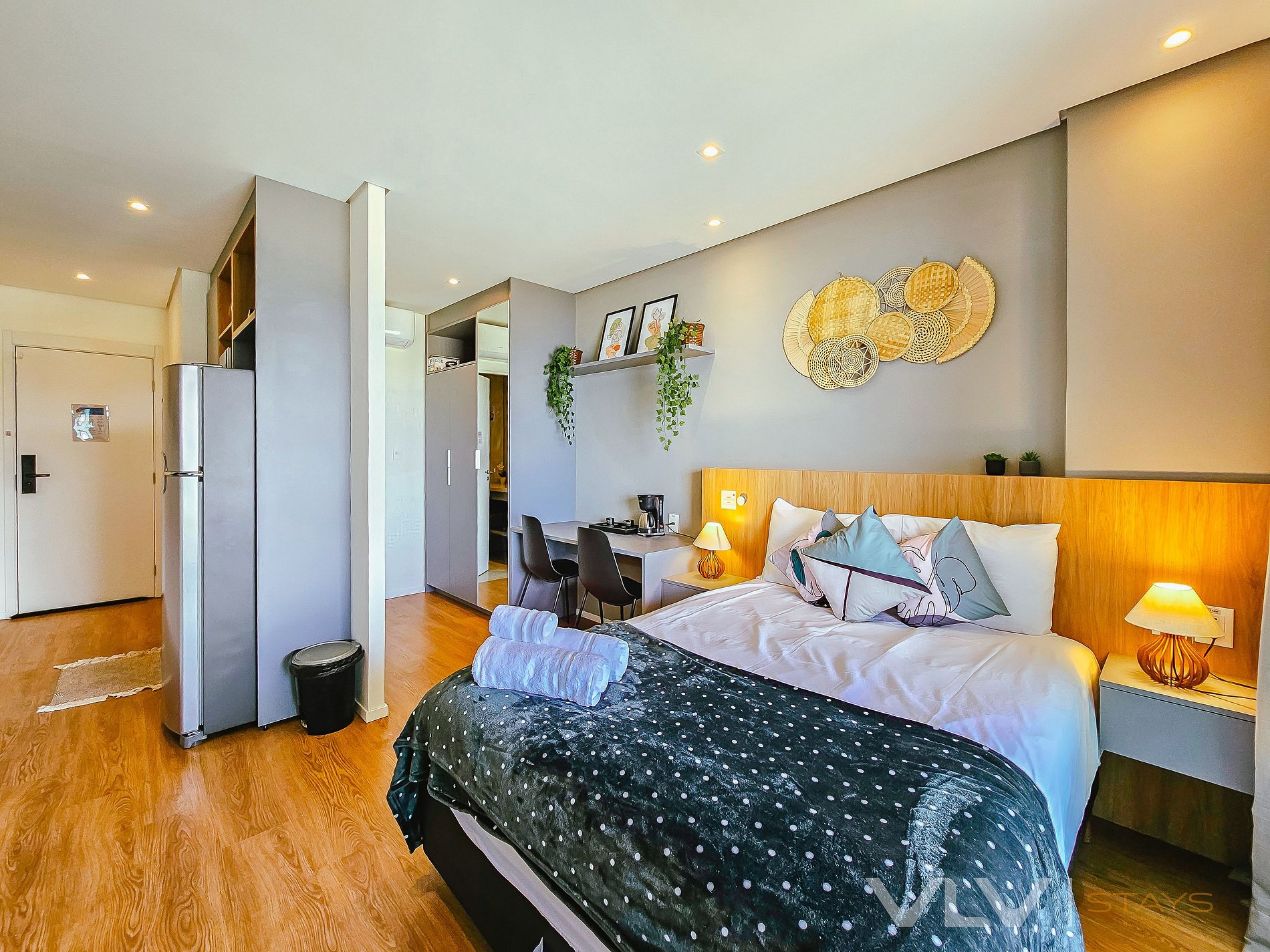 Conforto total: Studios modernos e bem equipados, com cozinha completa, ar-condicionado, e Wi-Fi de alta velocidade, para que você tenha toda a liberdade de se sentir em casa.