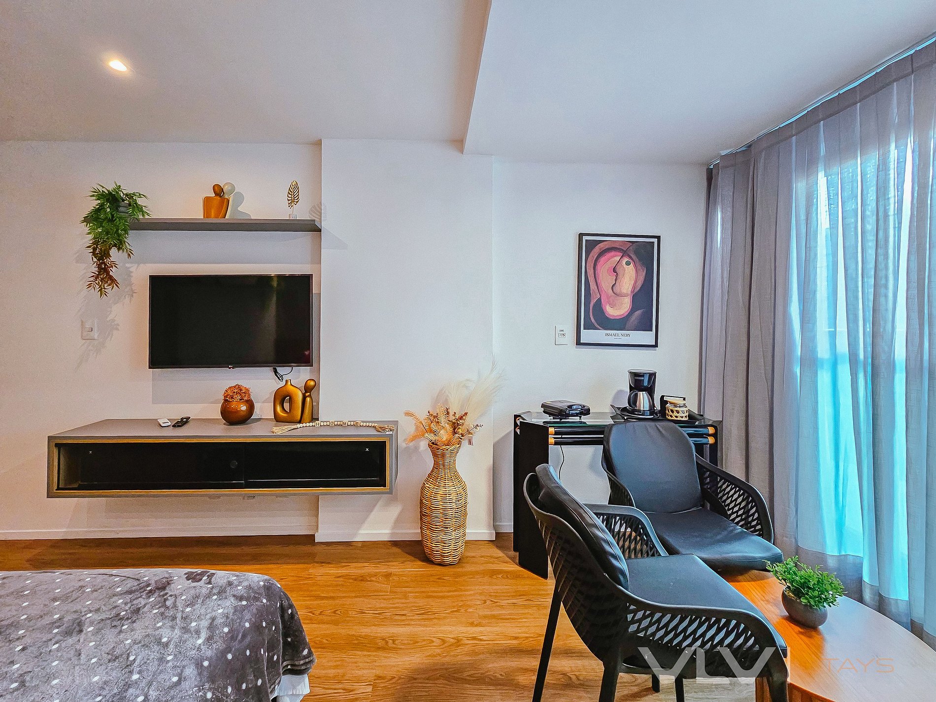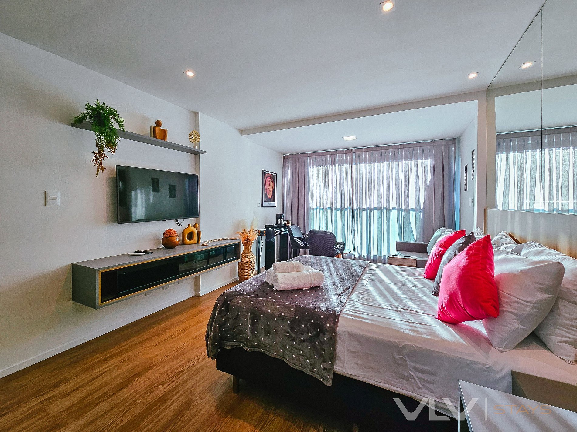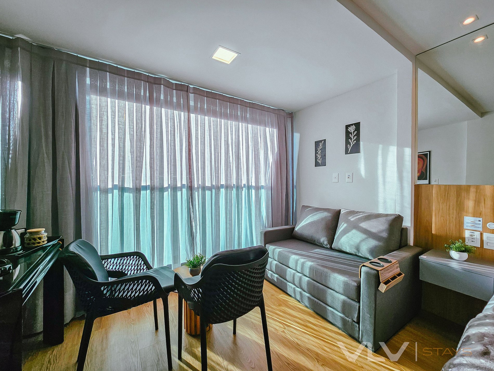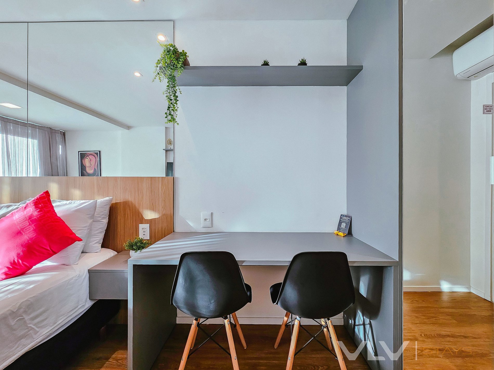 Conforto total: Studios modernos e bem equipados, com cozinha completa, ar-condicionado, e Wi-Fi de alta velocidade, para que você tenha toda a liberdade de se sentir em casa.