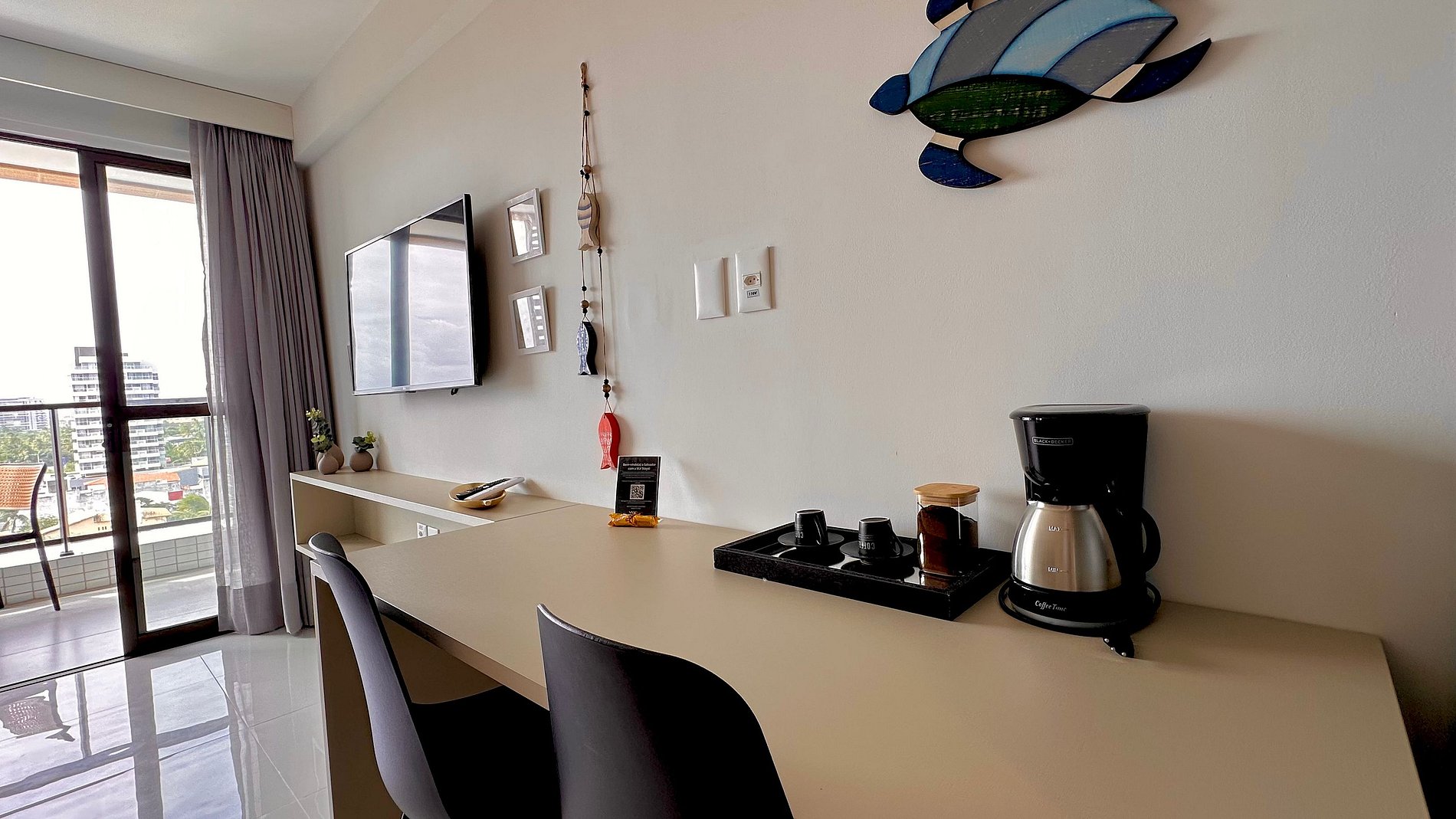 A decoração é moderna e funcional, pensada nos mínimos detalhes para que você se sinta em casa desde o primeiro instante. E o melhor: a poucos passos da orla de Itapuã e do pôr do sol mais bonito da cidade.
