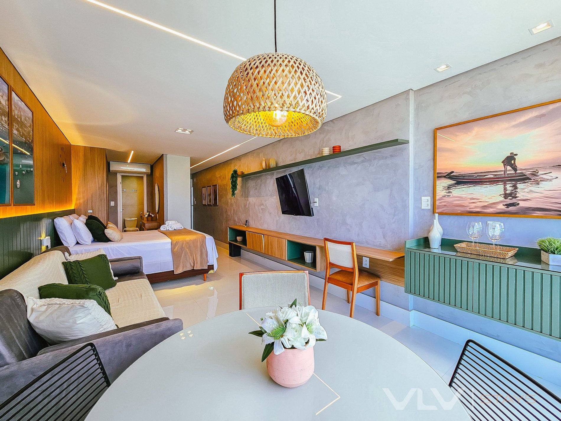Desfrute de um studio moderno, aconchegante e super bem decorado, localizado em frente à Praia de Armação. O espaço conta com cama de casal queen, sofá cama, cozinha compacta - NAO TEM MICROONDAS.