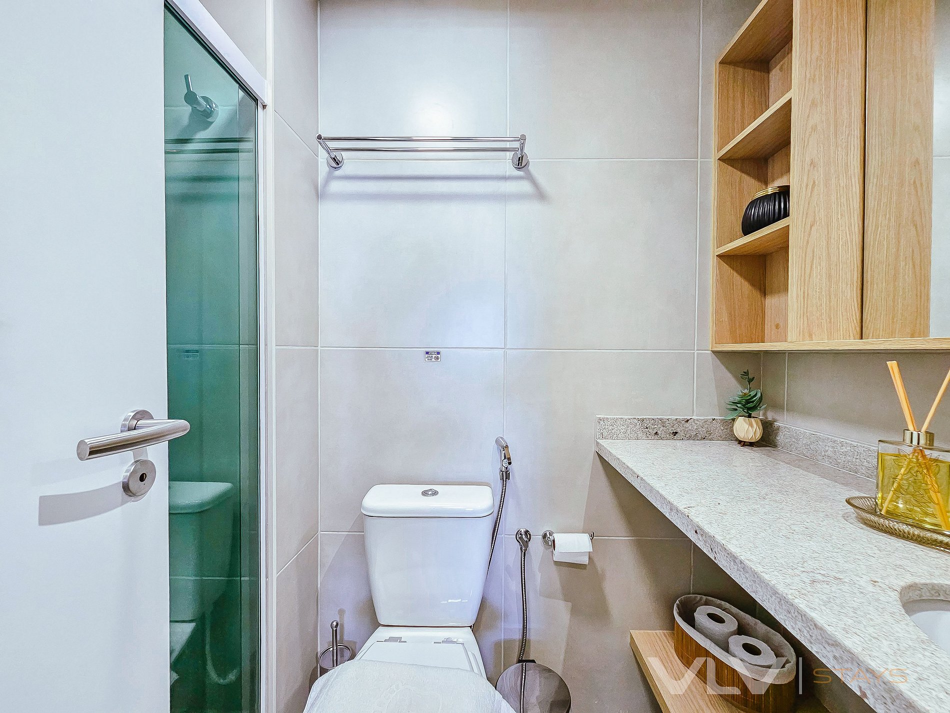 Comodidades de luxo: Piscina climatizada, academia completa, spa com jacuzzis, lavanderia, mini-mercado, robô de entrega (um dos únicos do país) e área de coworking, tudo pensado para oferecer um equilíbrio entre descanso e produtividade.