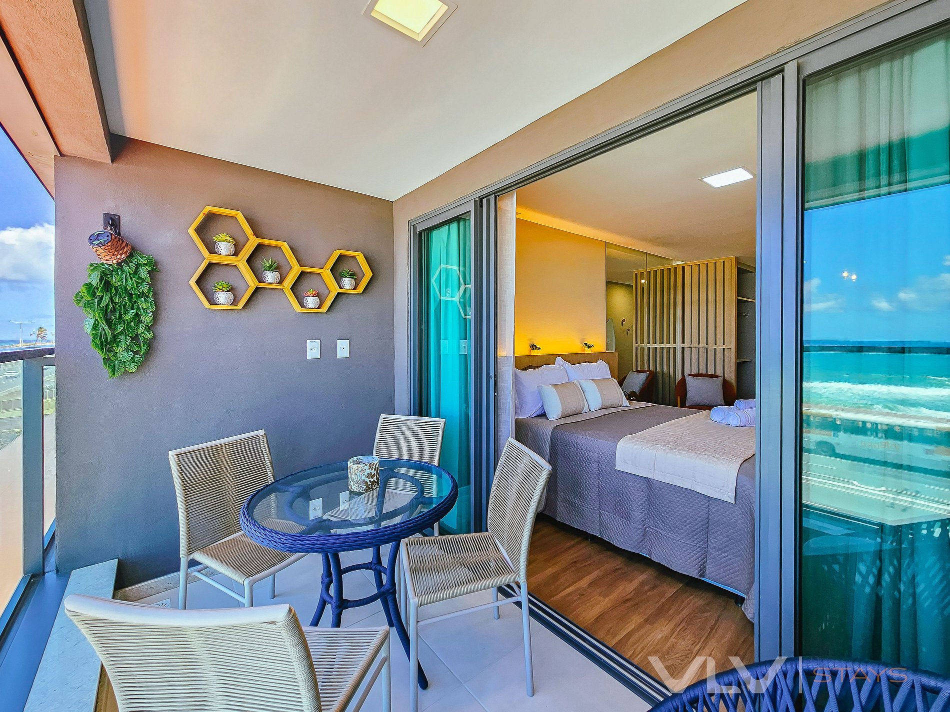 Studio para até 2 pessoas Vista para o mar frontal.